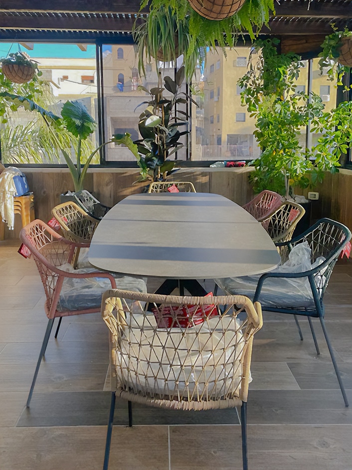 הסט כולל שולחן בשילוב 6 כיסאות.