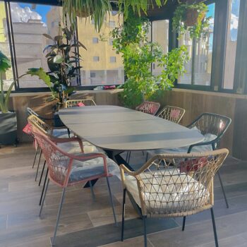 שלדת מתכת צבועה בתנור בשילוב חבלי נאוטיקה.