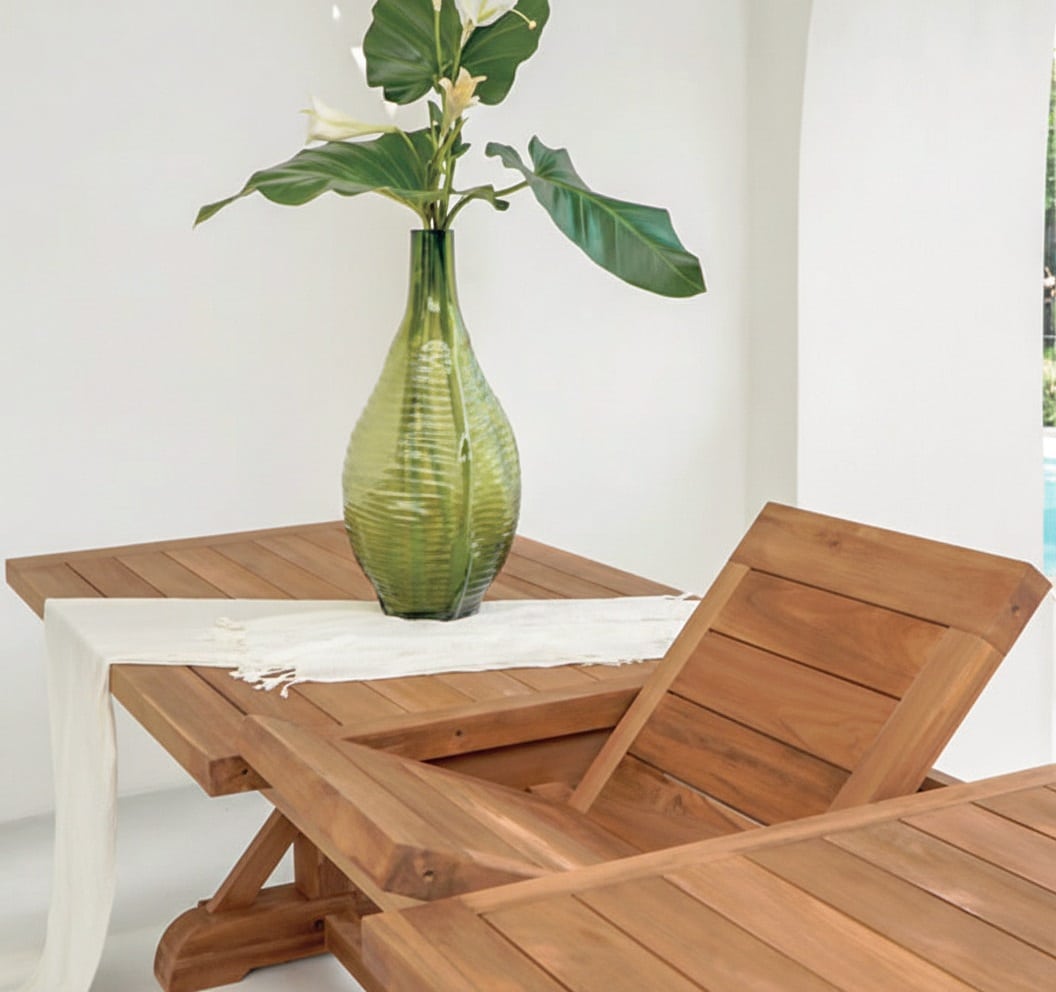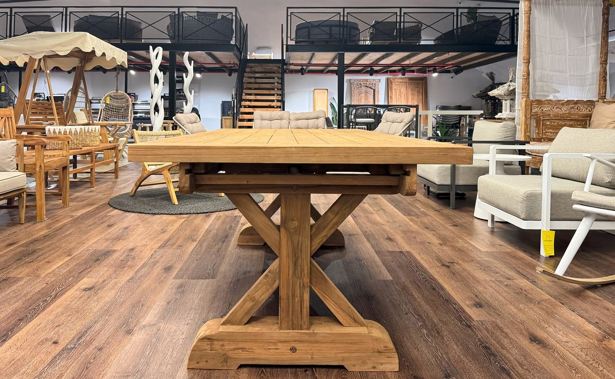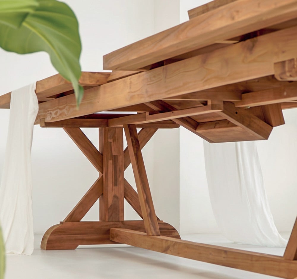 שולחן טיק נפתח דגם קרוס – מגוון מידות