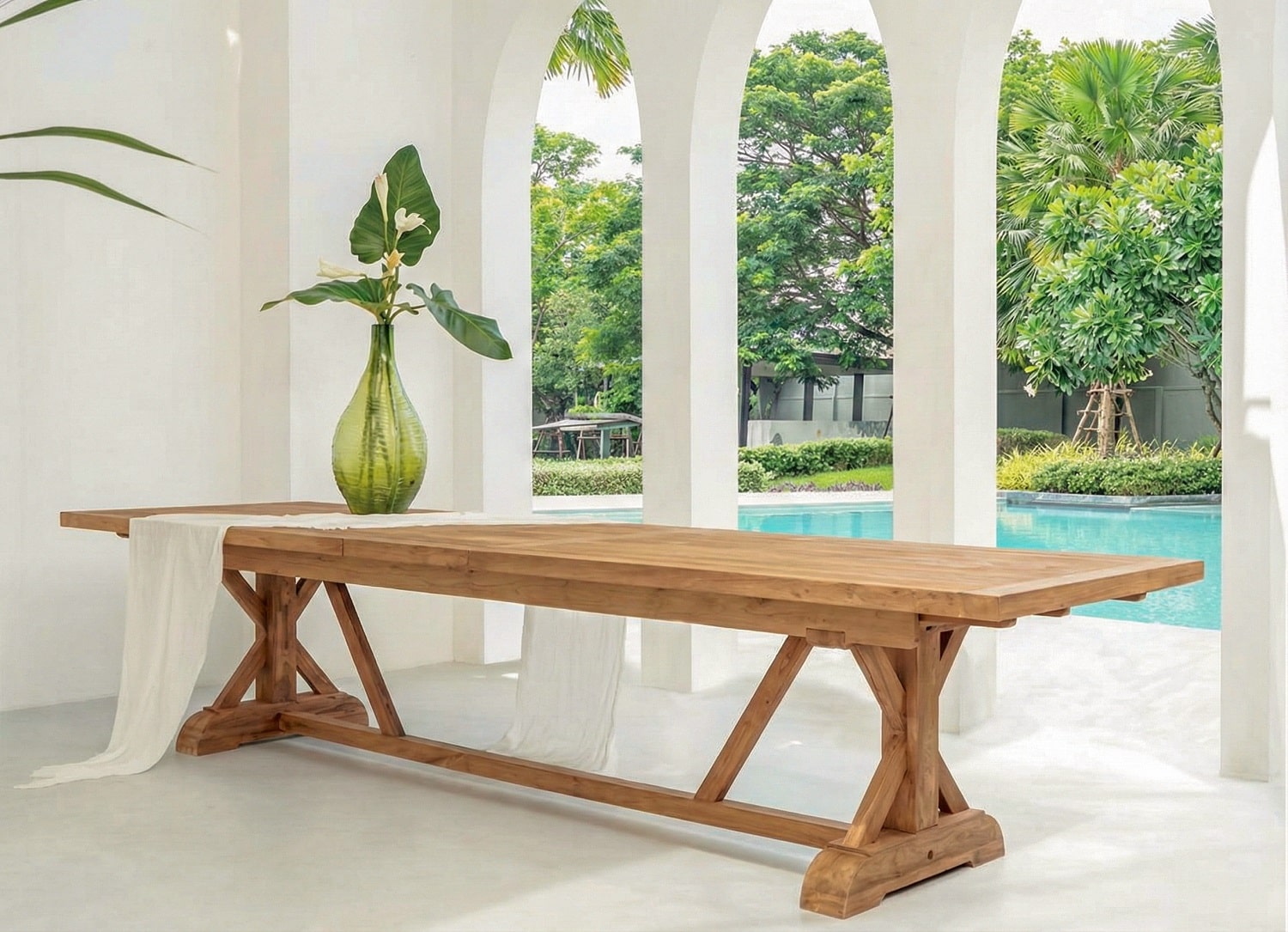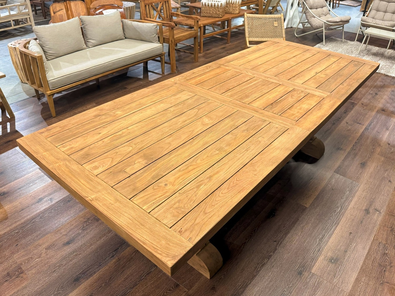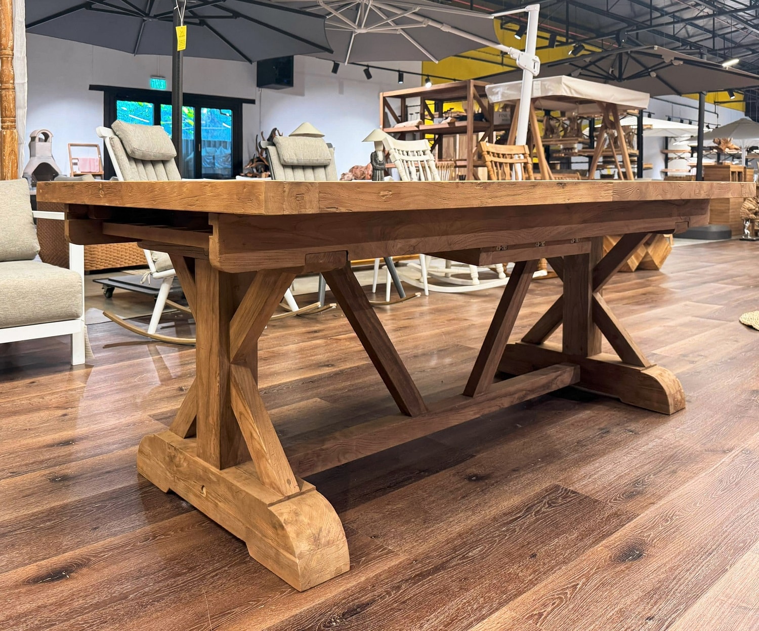 שולחן טיק נפתח דגם קרוס – מגוון מידות