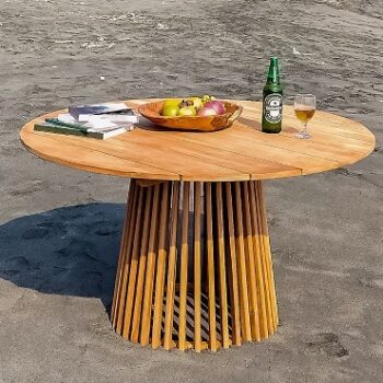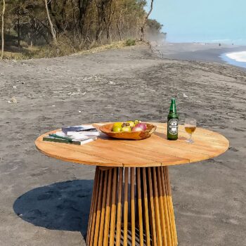 שולחן מעוצב מעץ טיק אינדונזי.