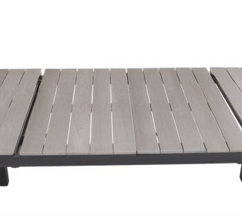 השולחן בנוי משלדת אלומיניום “אל חלד” בשילוב לוחות דמוי עץ.