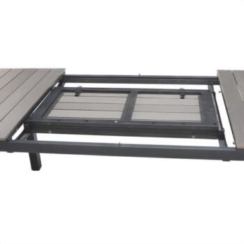 שולחן אלומיניום מפואר עם פתיחה דו שלבית.