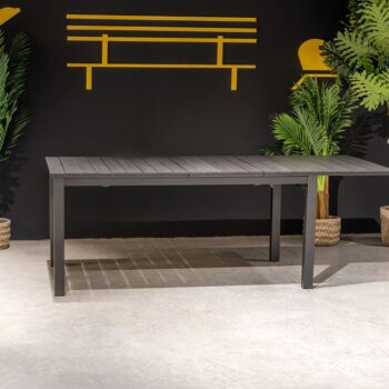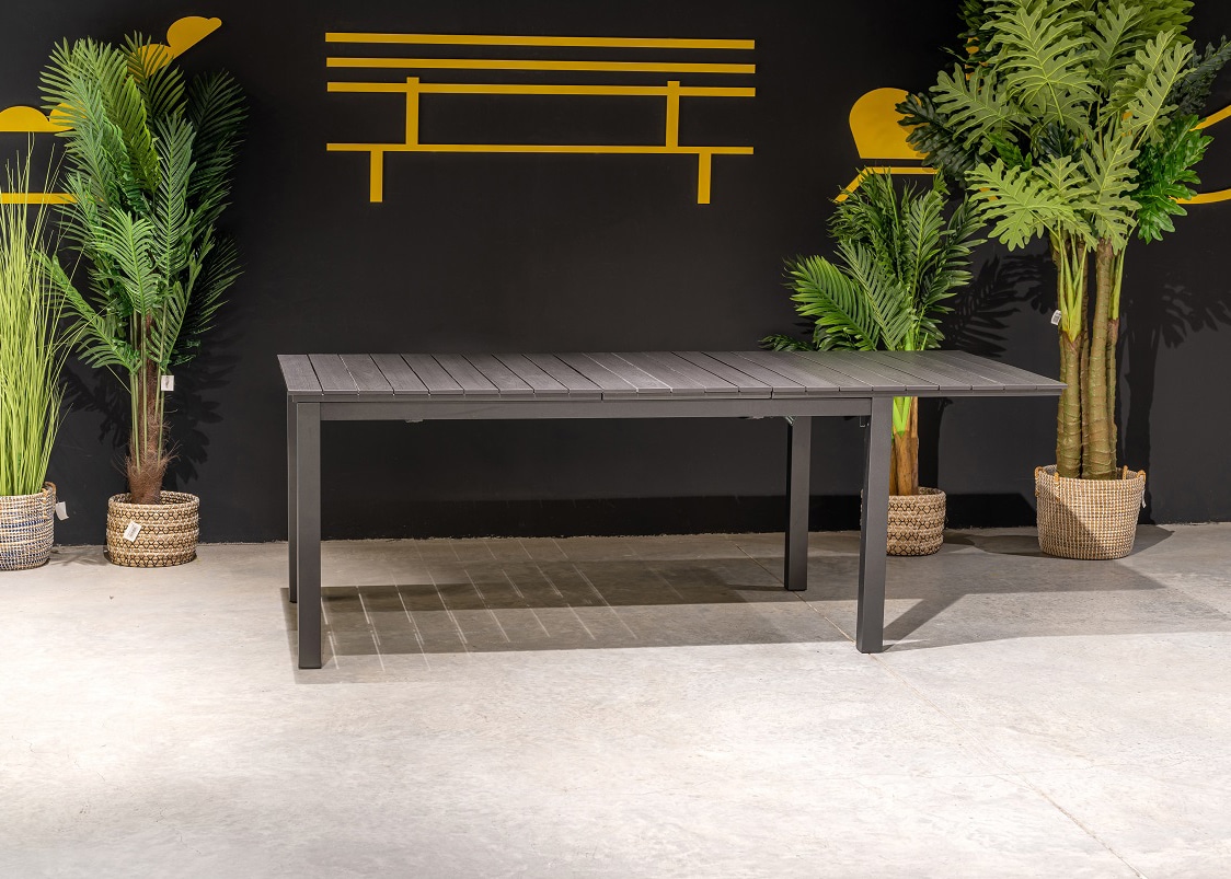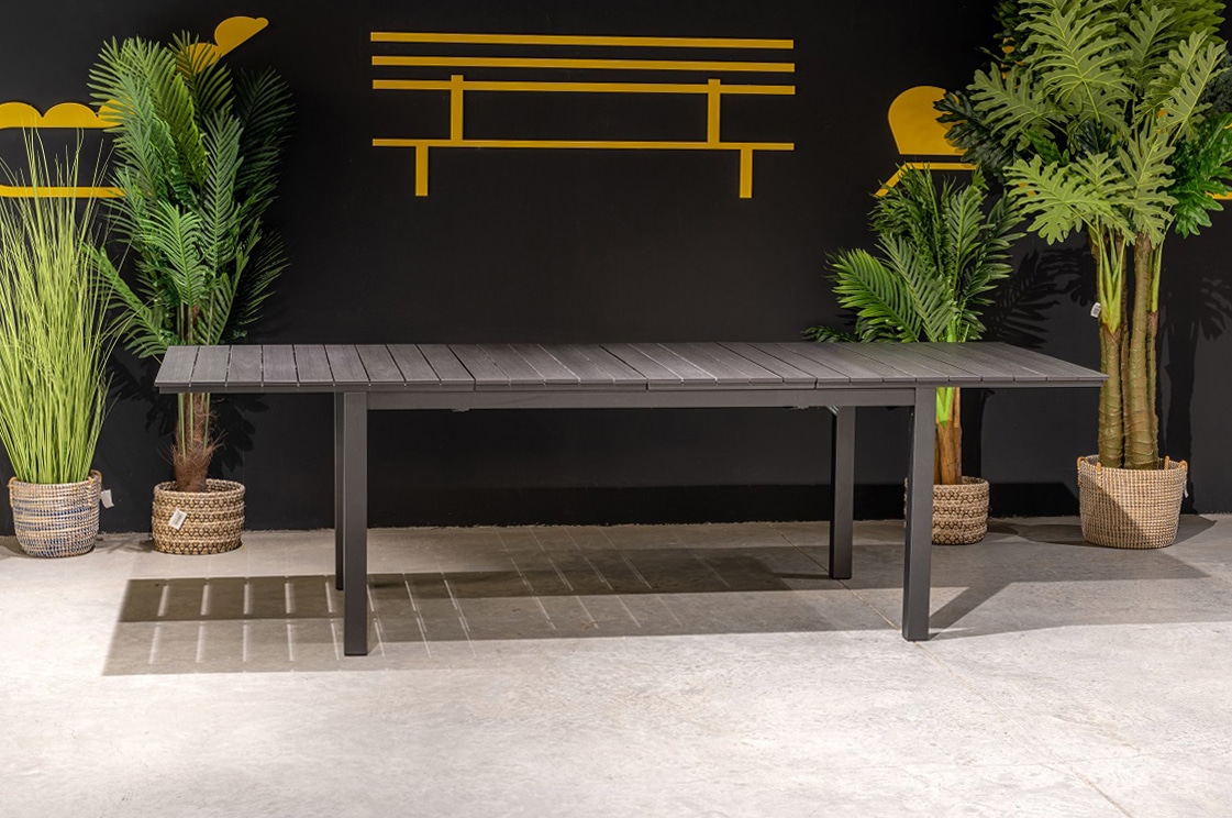 שולחן אלומיניום מפואר עם פתיחה דו שלבית.