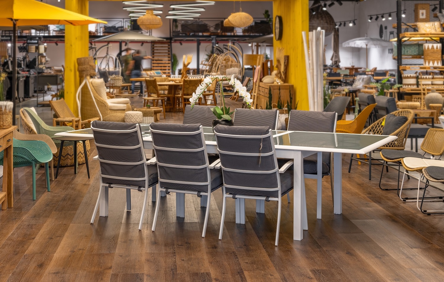 שולחן האוכל בנוי מאלומיניום “אל חלד” מחוזק עם הגנה ותמיכה במסגרת השולחן.