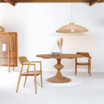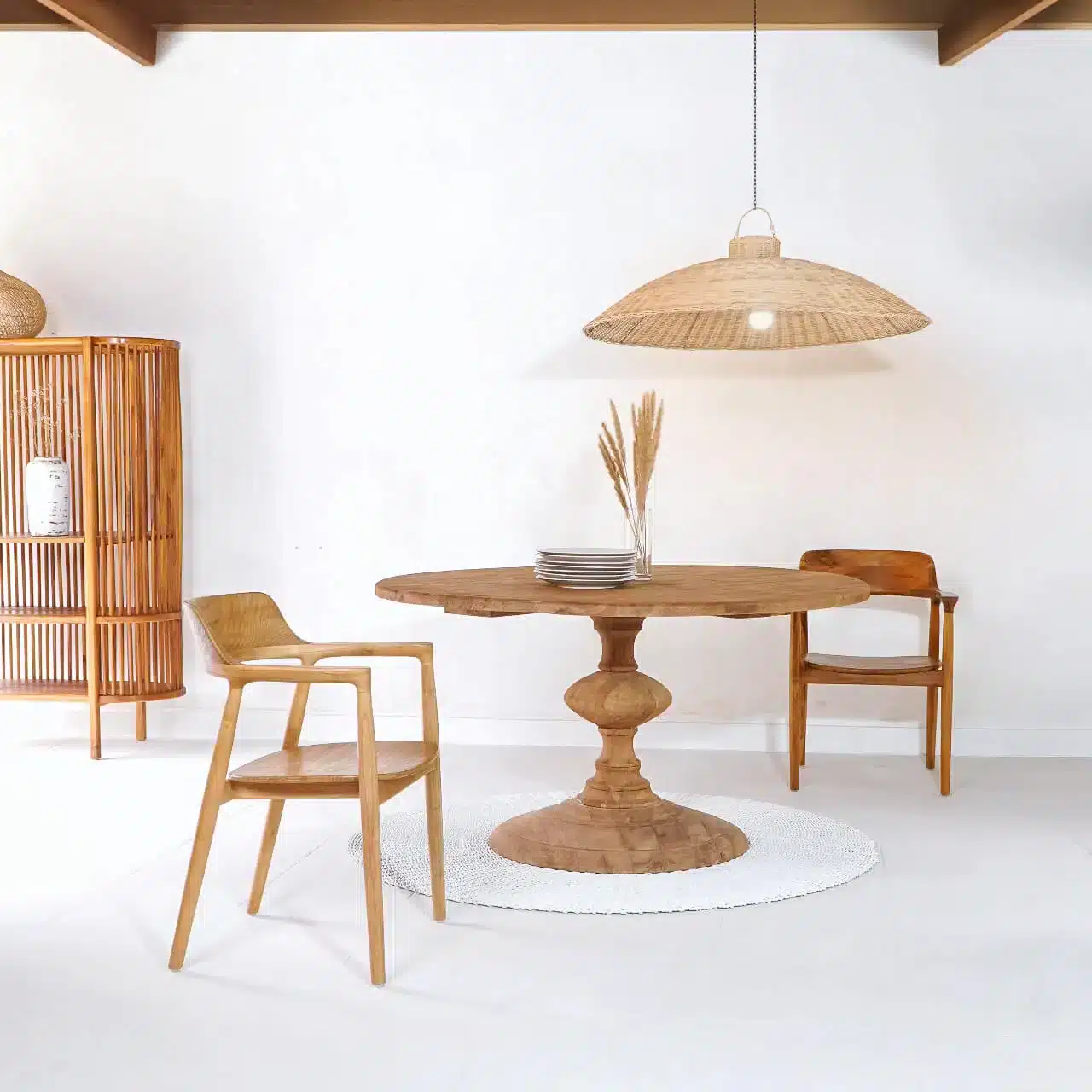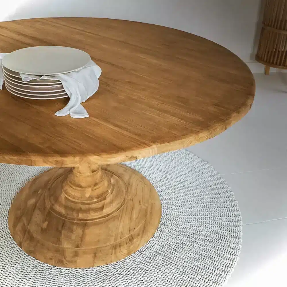 השולחן בנוי מעץ טיק אינדונזי מלא.