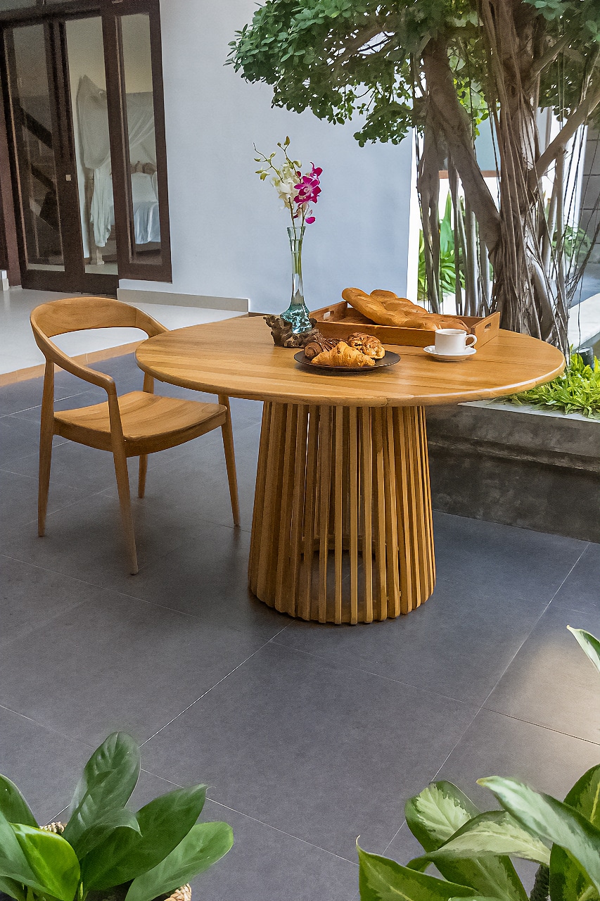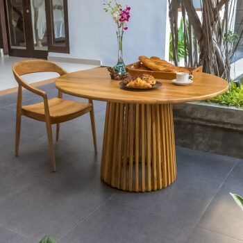 השולחן בנוי מעץ טיק אינדונזי מלא.