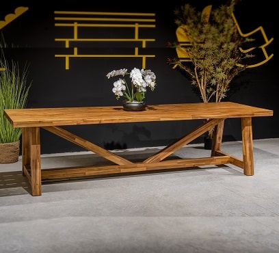 שולחן מעץ שיטה מלא, חזק ועמיד.