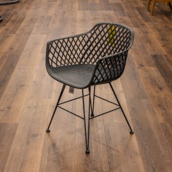 כיסא מאסיבי הבנוי מרגלי מתכת צבועה בתנור בשילוב מושב פלסטיק קשיח.