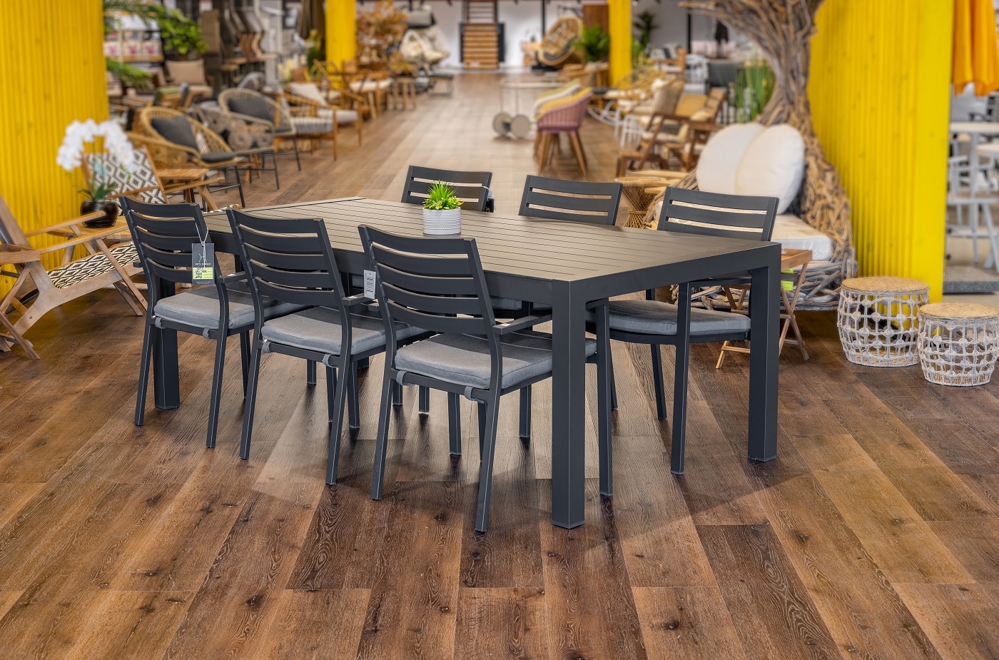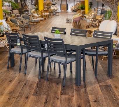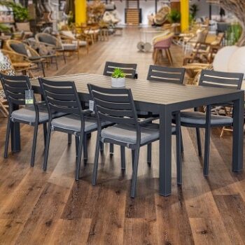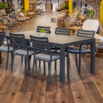 שולחן קבוע במידה 220X104 ס”מ בשילוב 6 כיסאות מדגם קומט.
