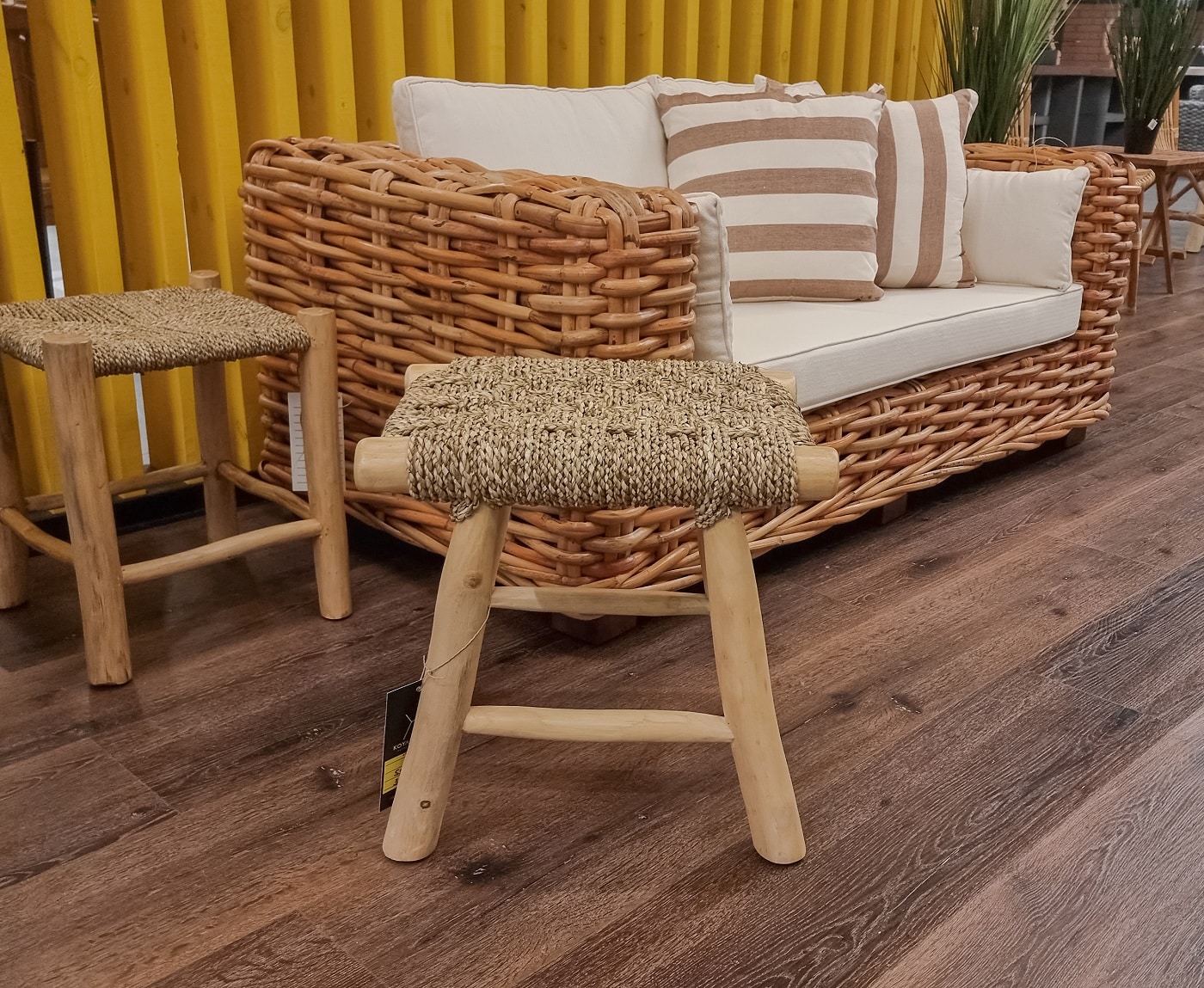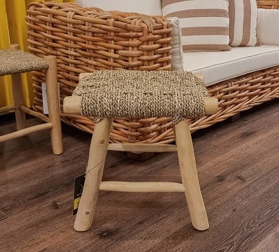 השרפרף בנוי מעץ טיק אינדונזי בחיפוי ראטן עשבי ים (SEAGRASS).