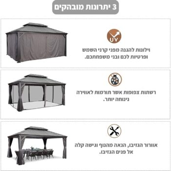 גזיבו אלומיניום מפואר ומחוזק לגינה / למרפסת.