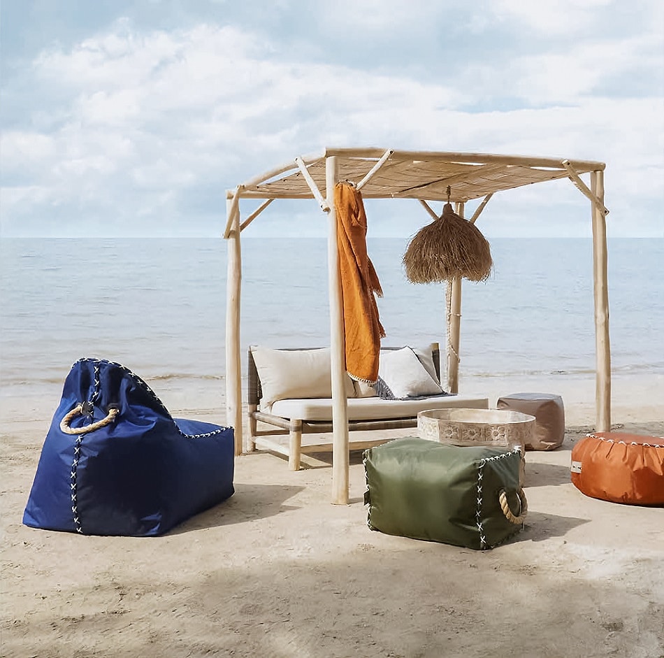 הגזיבו בנוי מעץ טיק בשילוב גג במבוק.