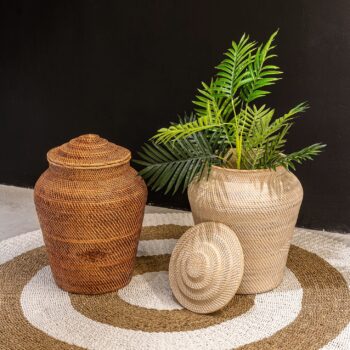 כד מעוצב במיוחד עשוי ראטן טבעי.