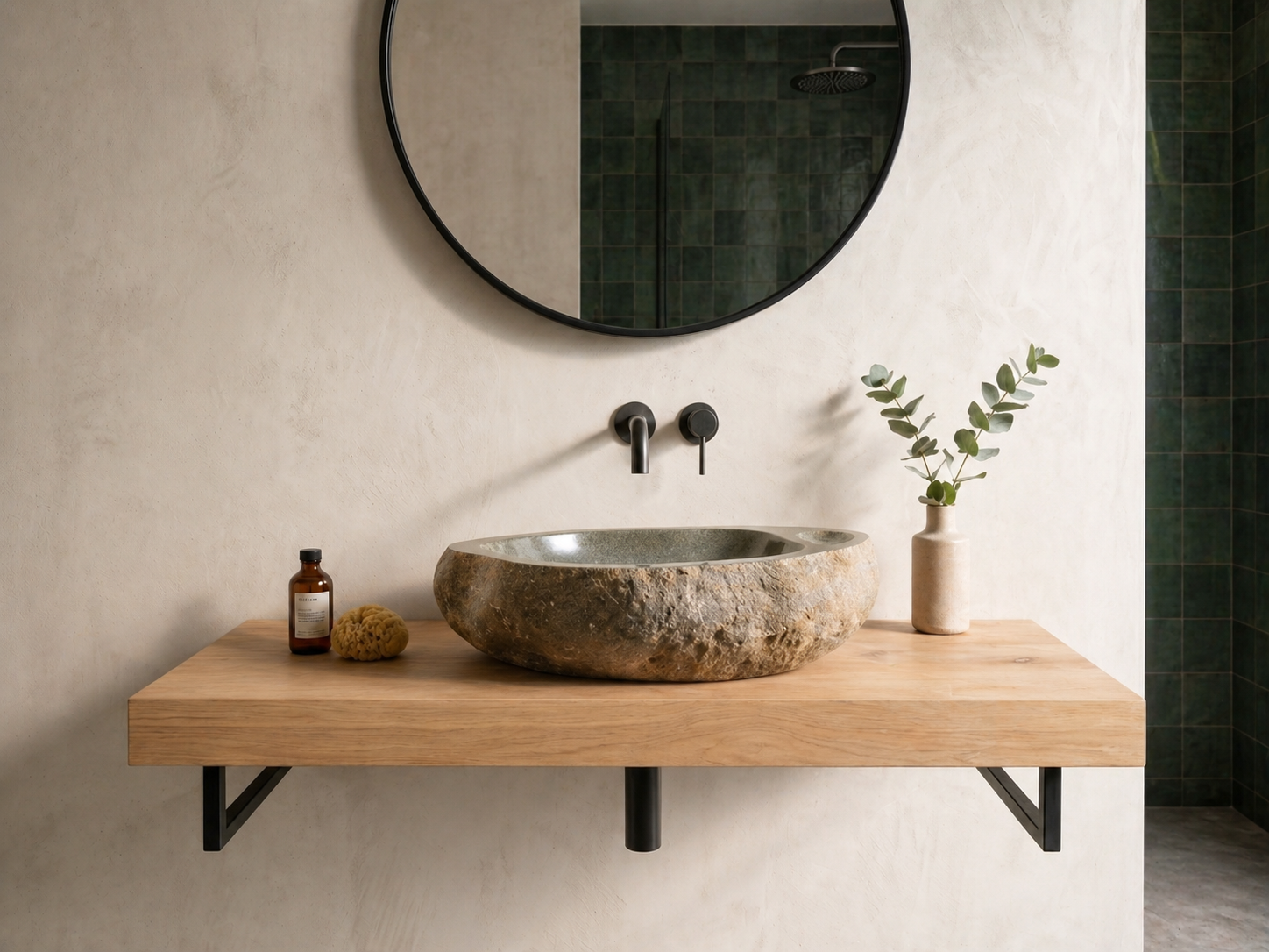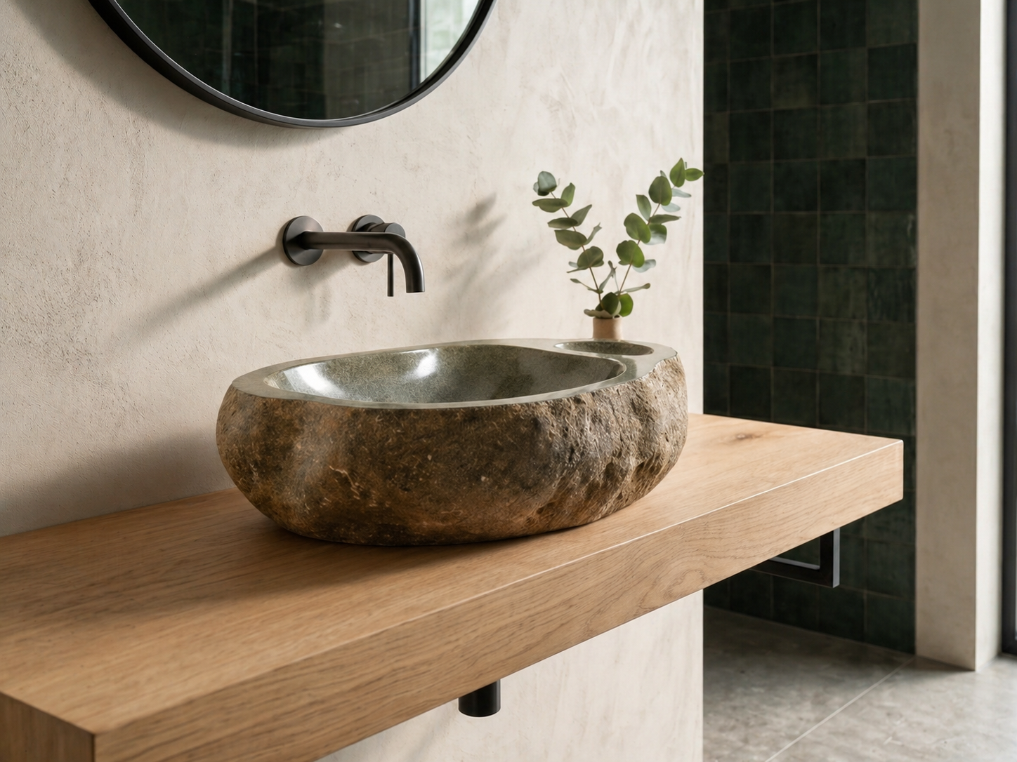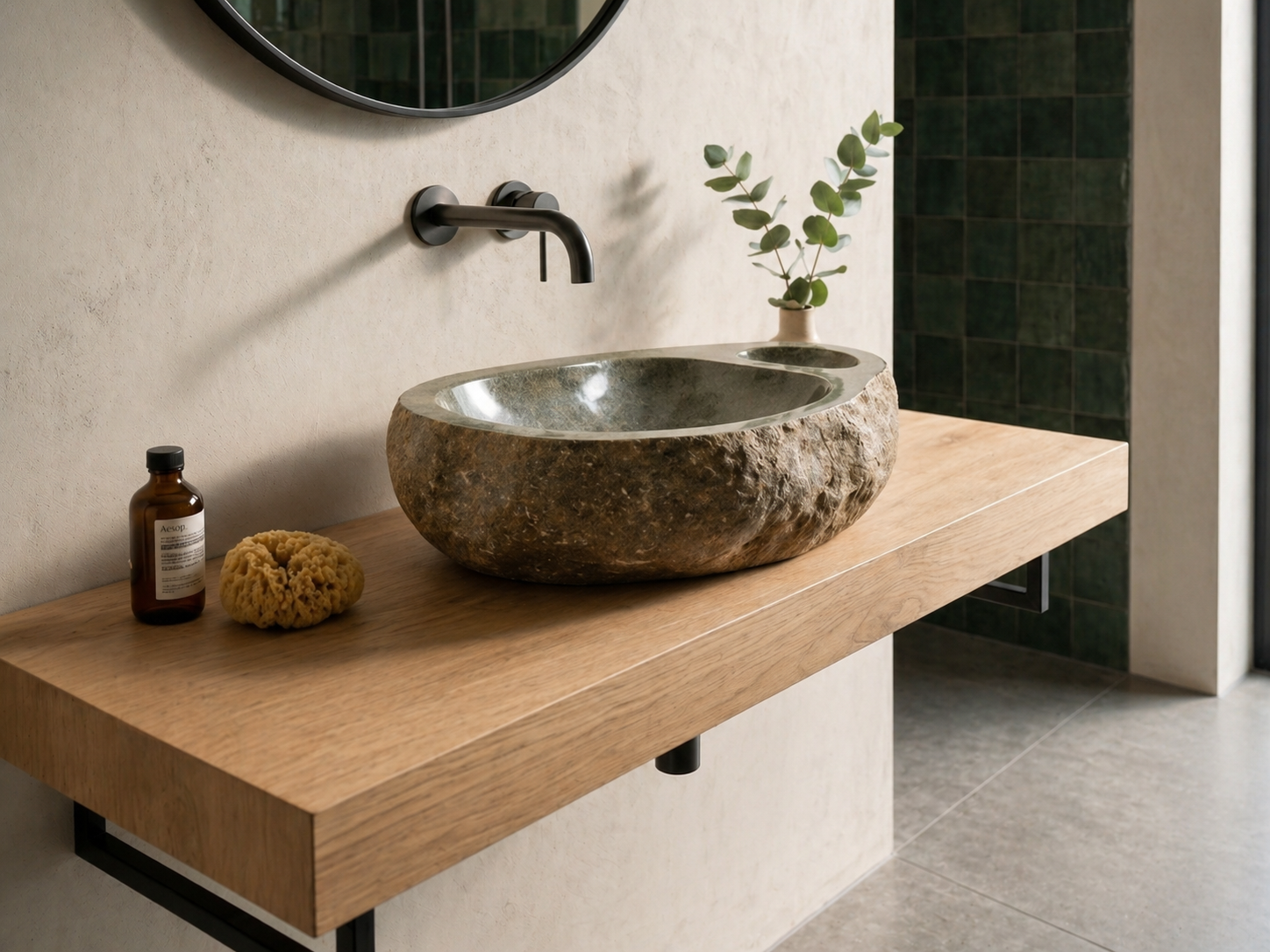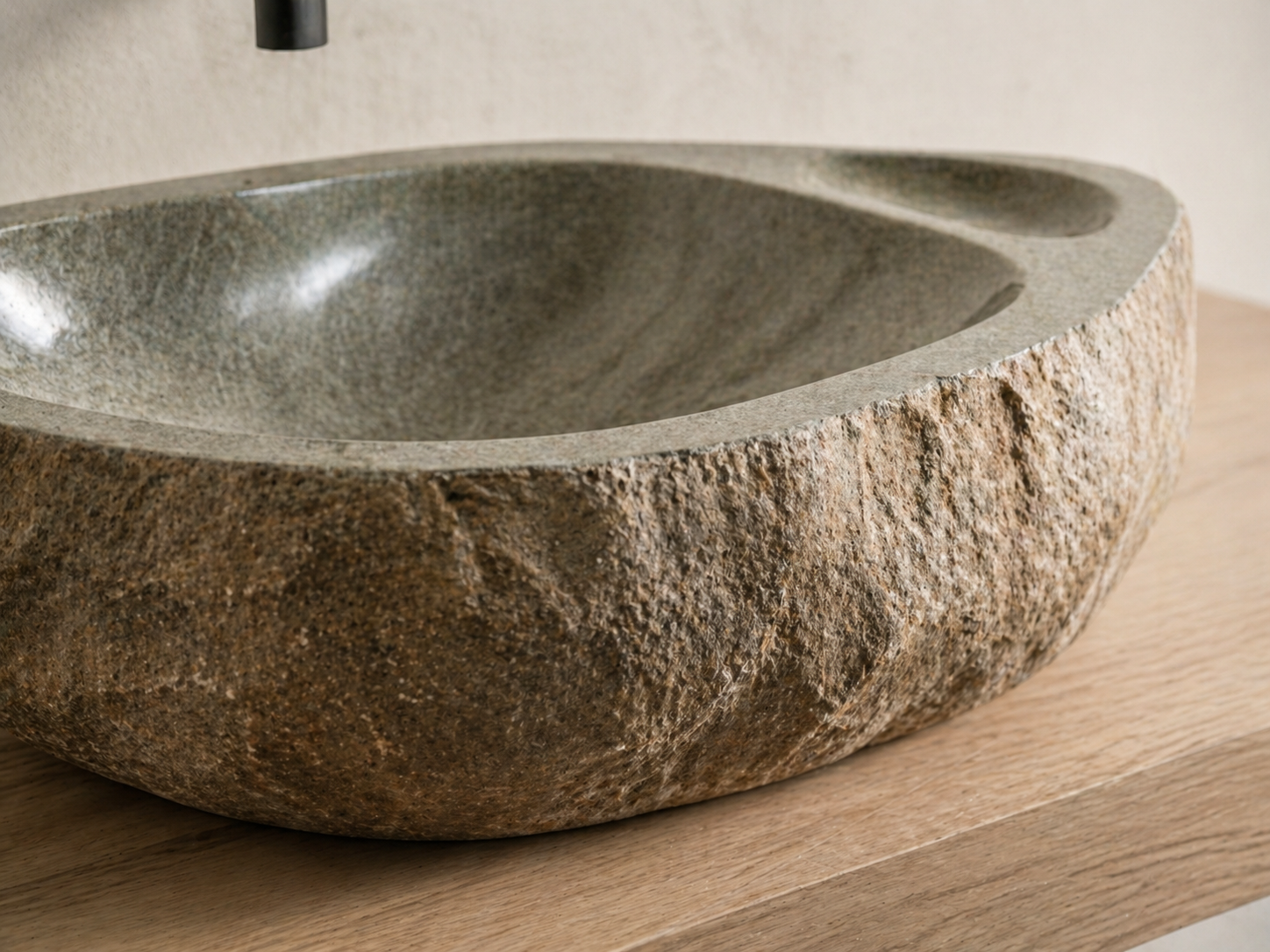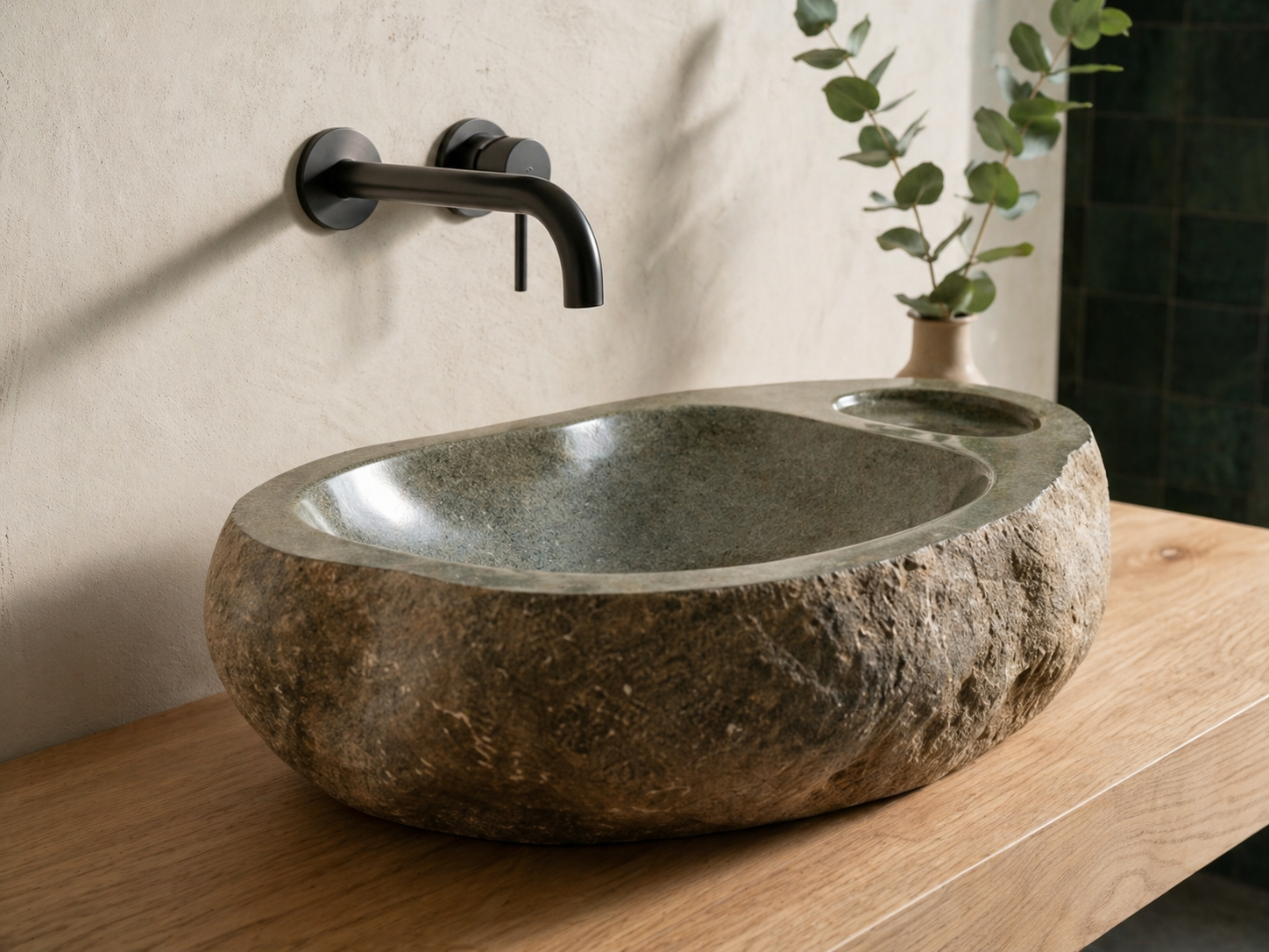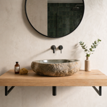 כיור אבן טבעית בעיצוב ייחודי, המשלב קערת רחצה אלגנטית עם משטח סבון מובנה כחלק בלתי נפרד מהאבן. הדגם מתאים לחדרי רחצה שרוצים להכניס אליהם מראה טבעי, יוקרתי ולא שגרתי — כזה שמרגיש כמו פריט שנבחר במיוחד ולא כמו כיור סטנדרטי.