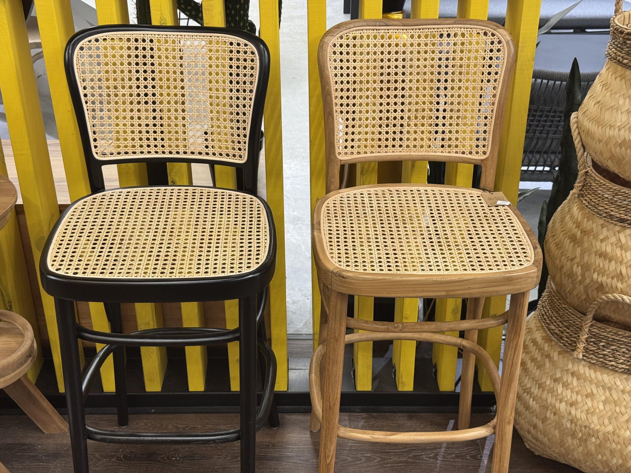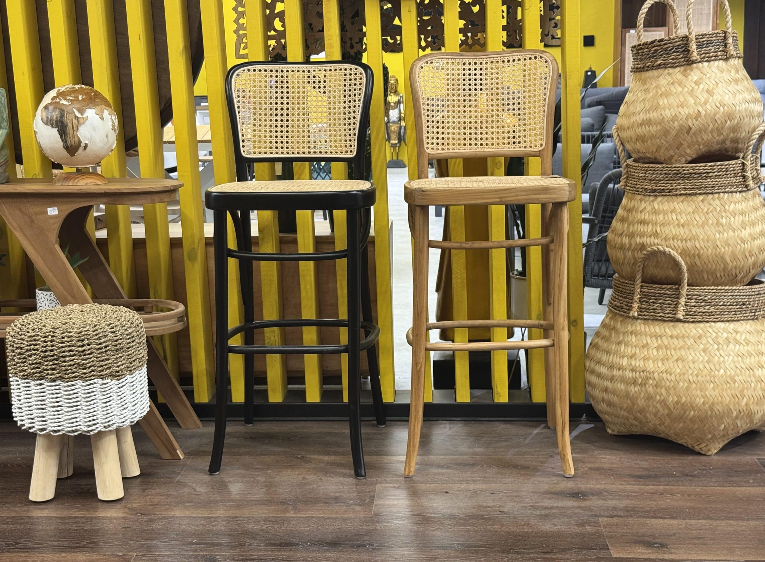 כיסא בר מעוצב עם שזירה אומנותית של ראטן טבעי דגם ג’ק.