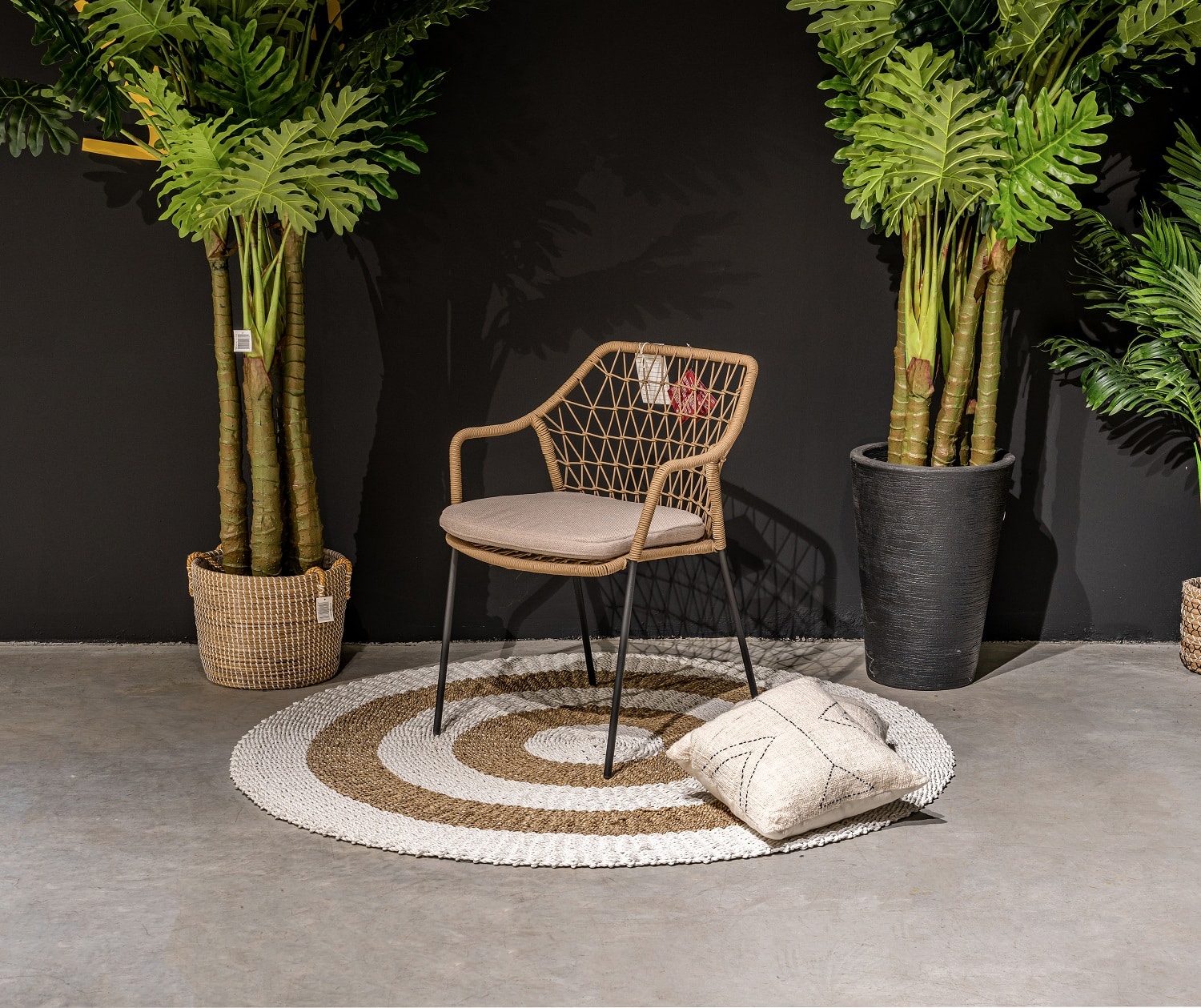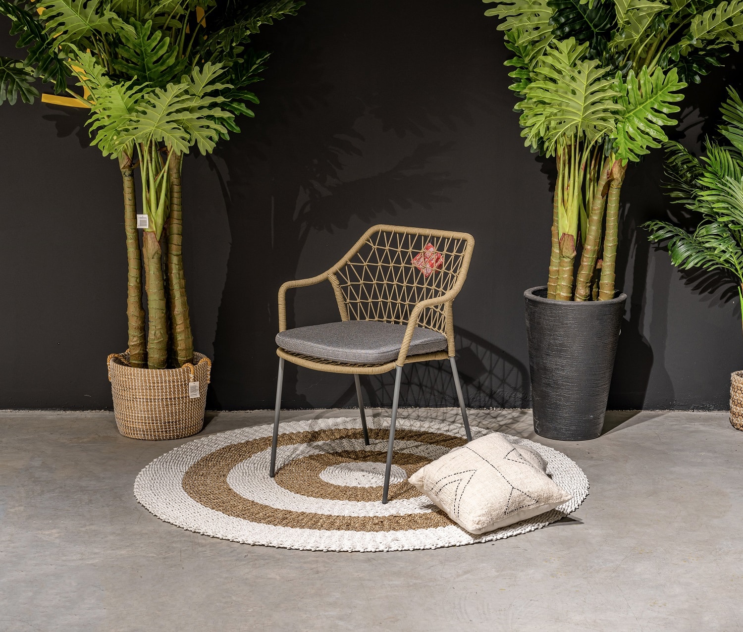 חבלים טבעי חאקי, ריפוד קרם, שלדה שחורה. אזל זמנית.