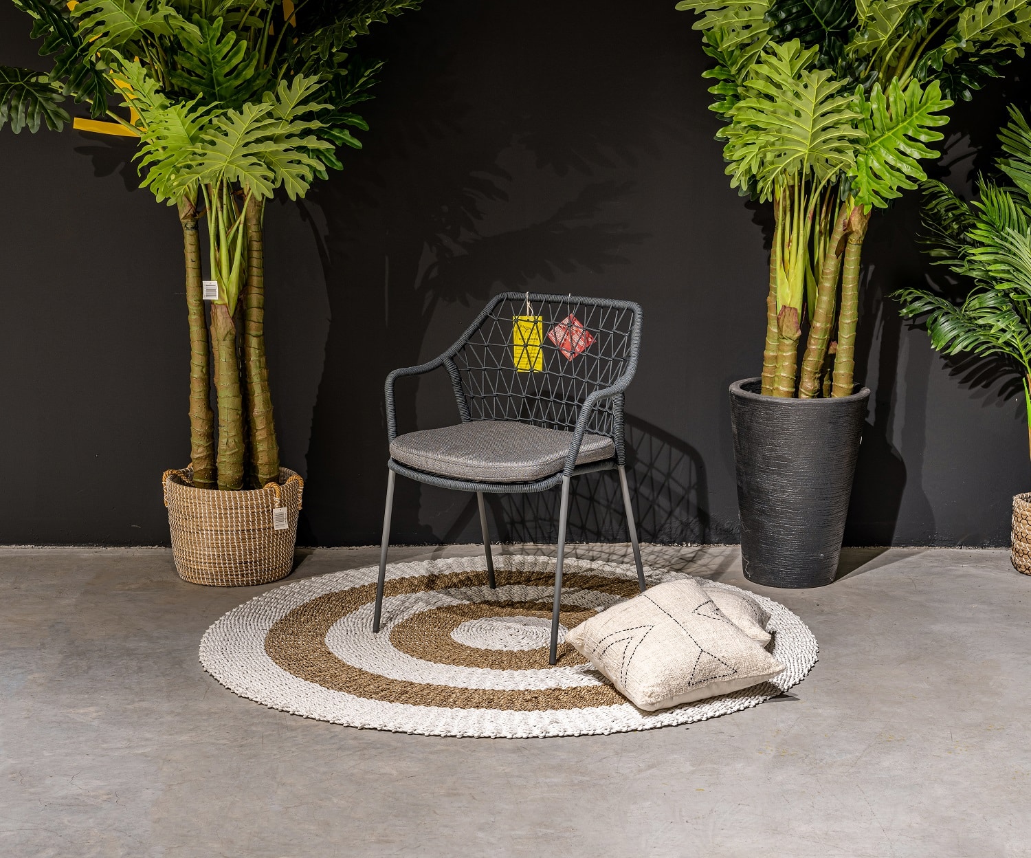 חבלים שחורים, ריפוד אפור, שלדה אפורה כהה.