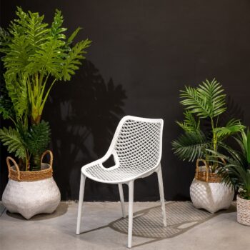 כיסא פלסטיק ABS יצוק בעל גב רשת התורמת לנוחות ואוורור.