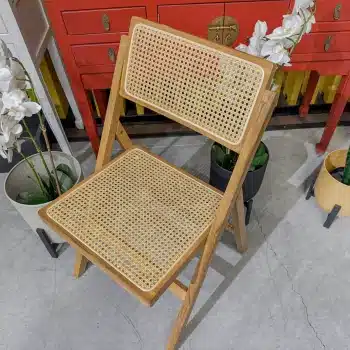 כיסא מתקפל מעוצב עם שזירה אומנותית של ראטן טבעי דגם קמרון.
