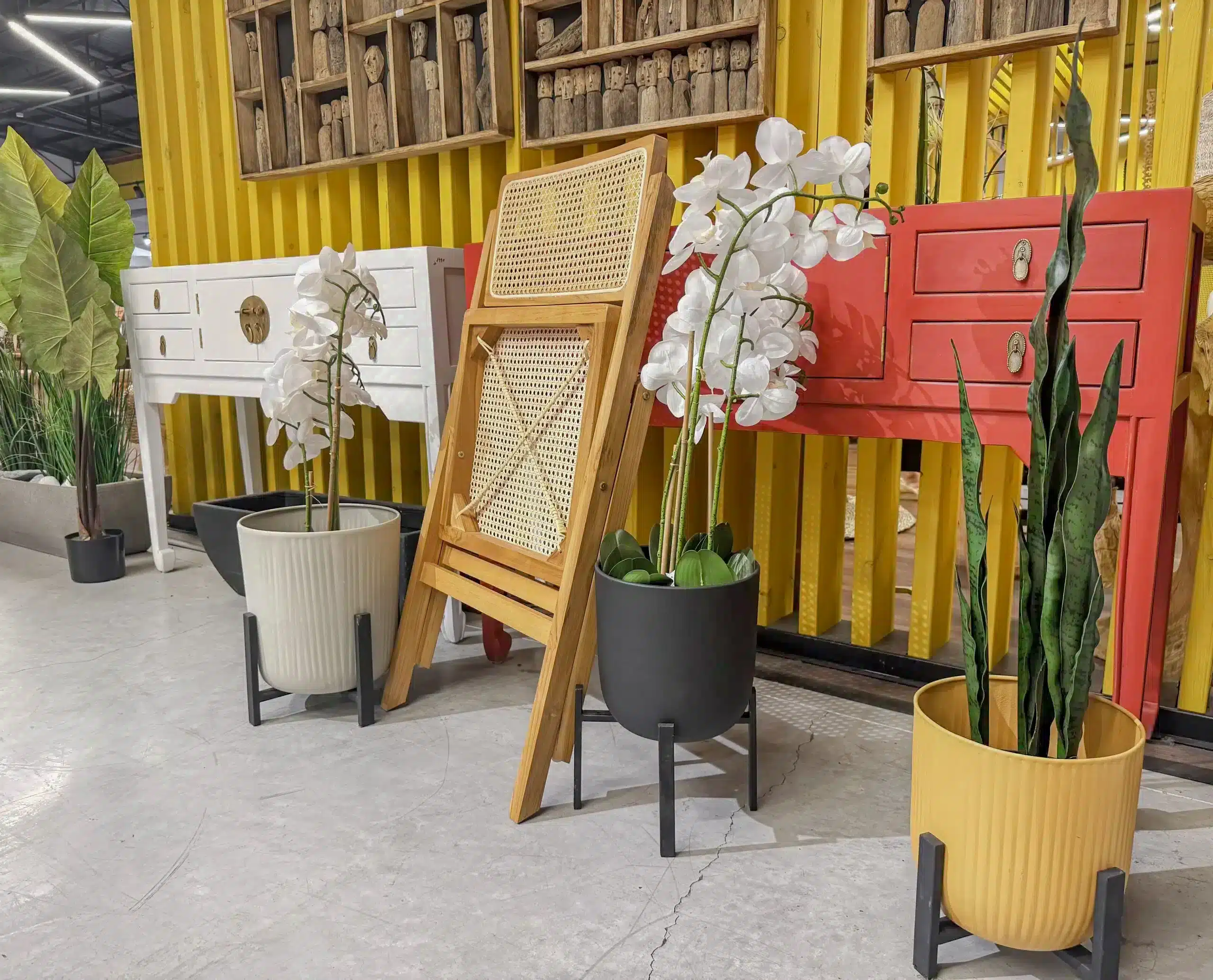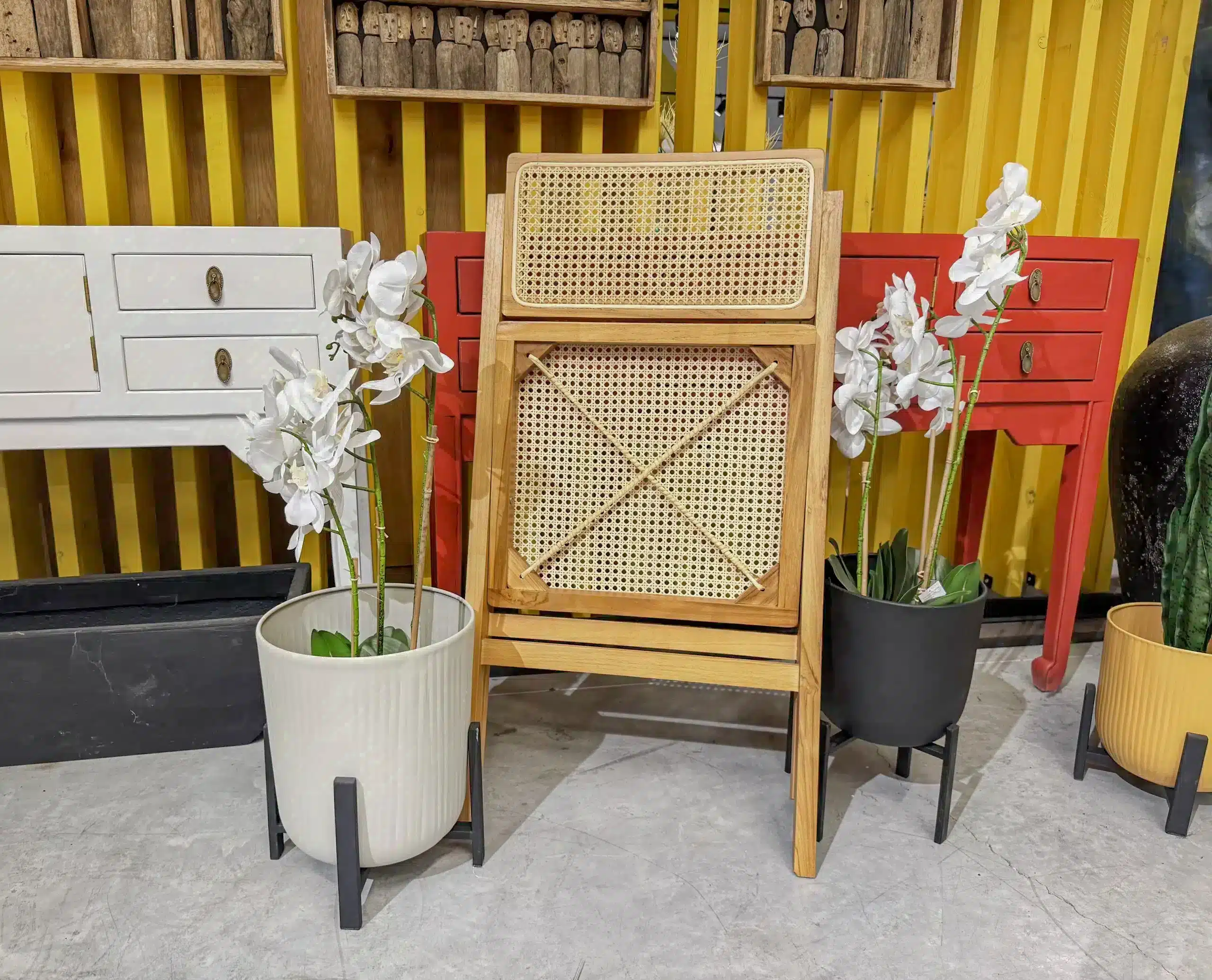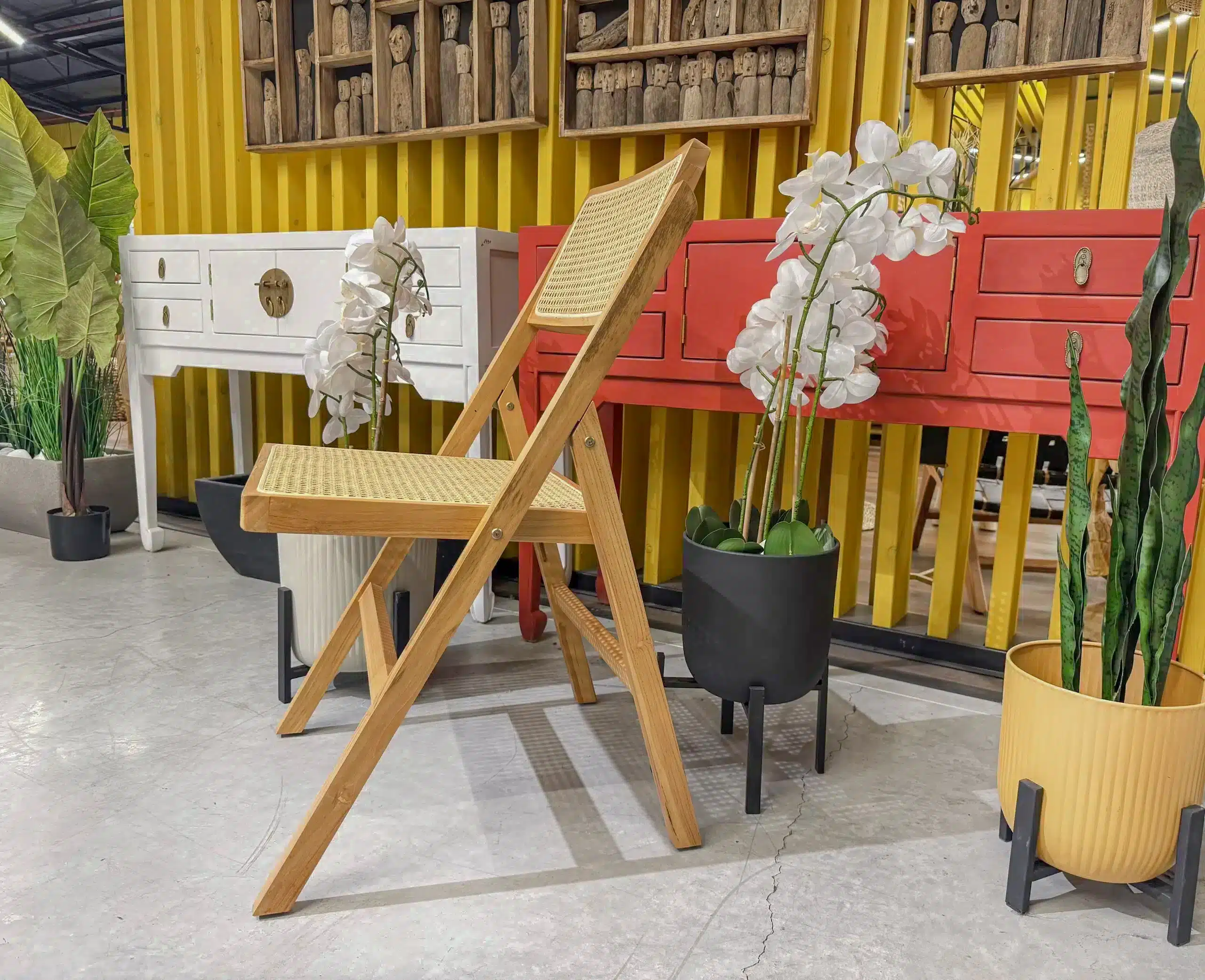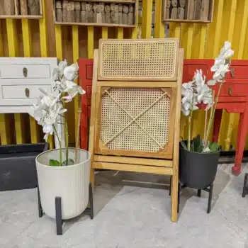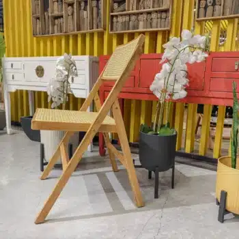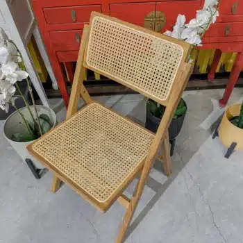 כיסא מתקפל מעוצב עם שזירה אומנותית של ראטן טבעי דגם קמרון.