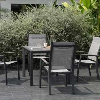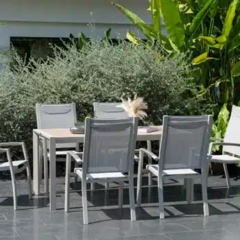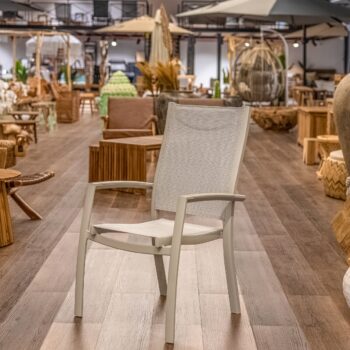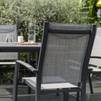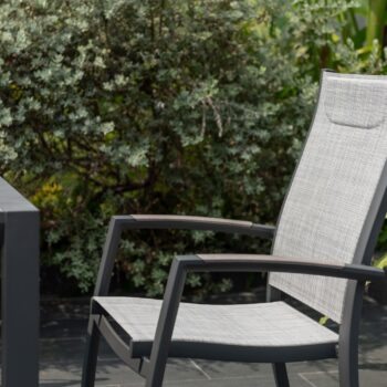כיסא פנמה המעוצב עם גב מוגבה הוא הבחירה האידיאלית לארוחות קיץ ארוכות באוויר הפתוח.