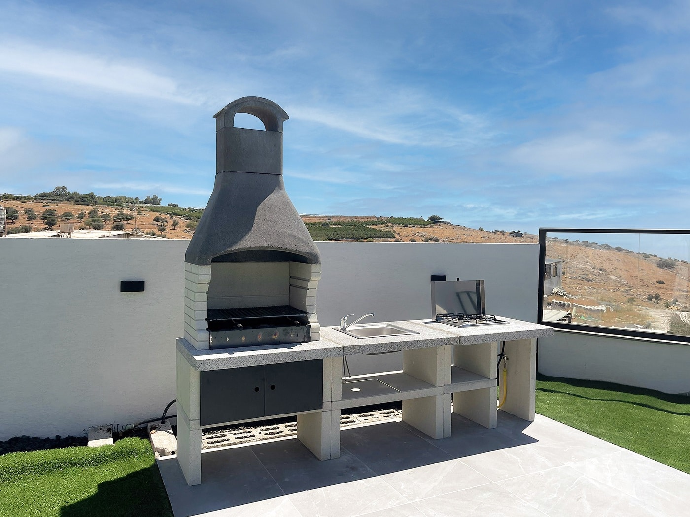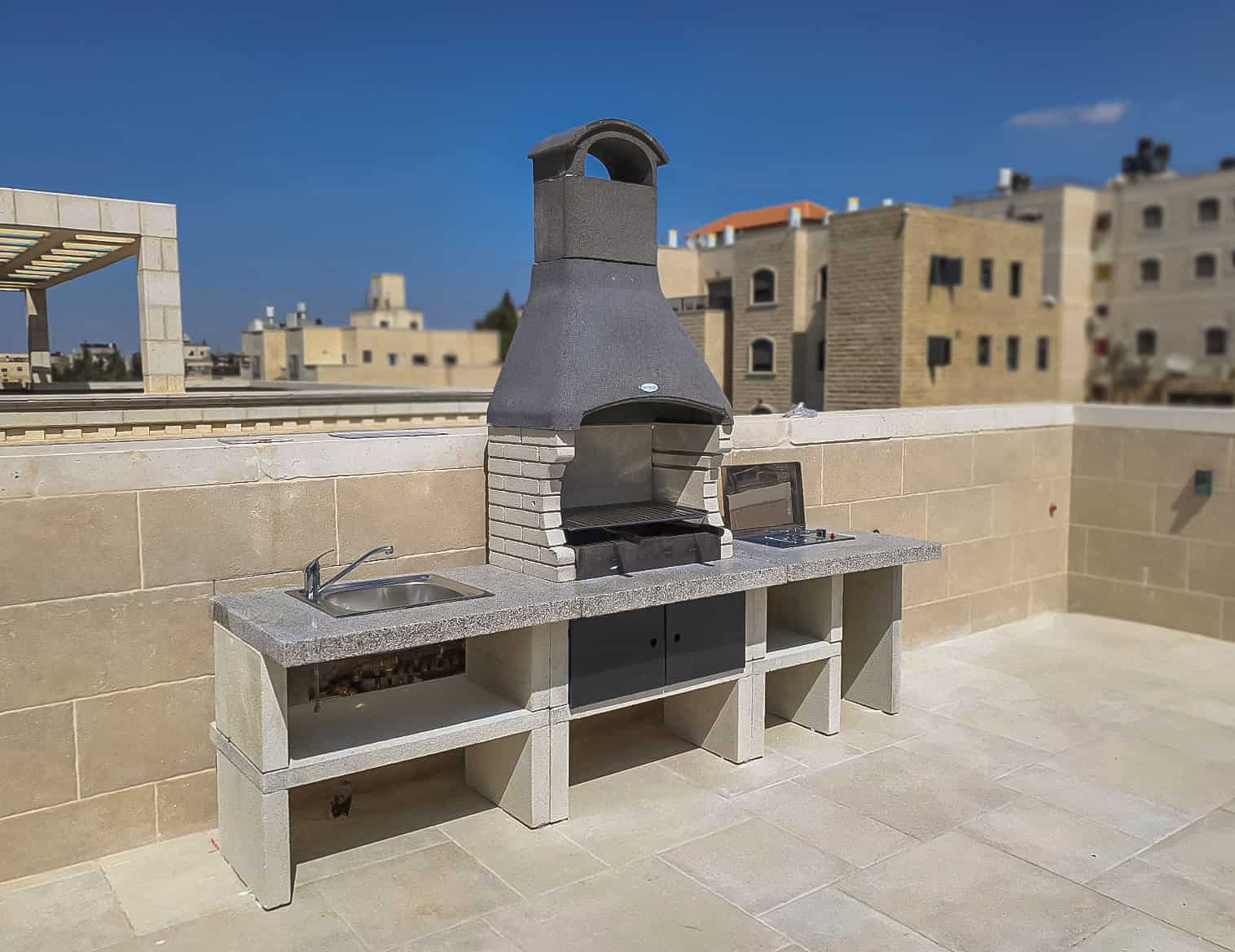 המטבח מורכב מגריל אבן בנוי בתוספת יחידת כיור מנירוסטה אשר עמידה לתנאי חוץ.