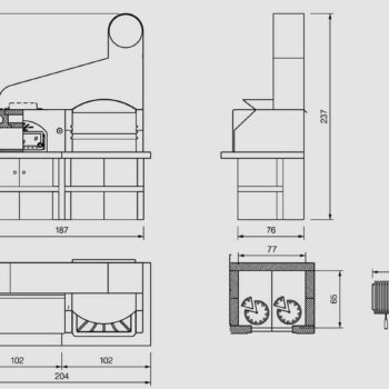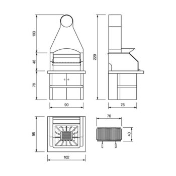 תא פחמים קדמי + תא אחורי לגזעים המשמש כמקרן חום ומחזק את הטמפרטורה לטאבון.