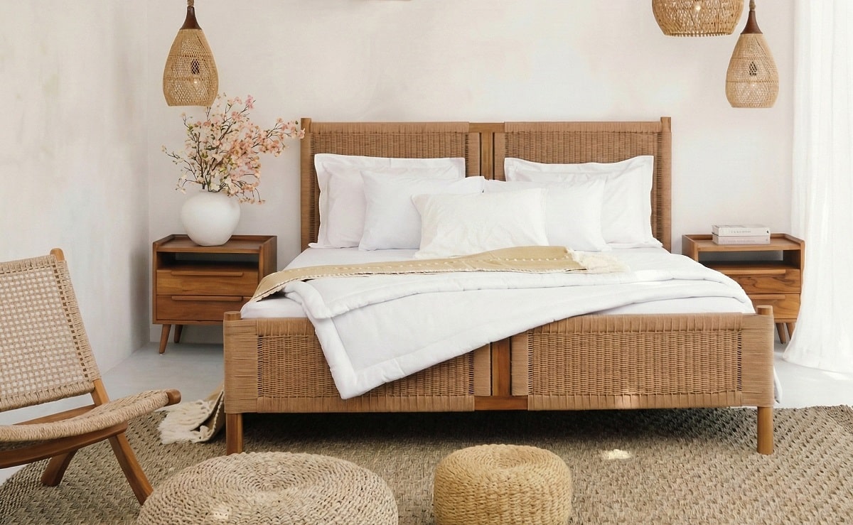 המיטה עשויה עץ טיק מלא, חזק, עמיד ואיכותי לשנים קדימה, בשילוב ראטן סינטטי במראה טבעי שמוסיף עומק, קלילות וסטייל נקי שלא מתאמץ.