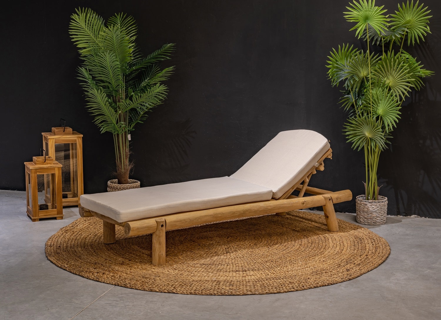 שלדת עץ טיק אינדונזי מאסיבית בשילוב ריפוד חוץ עבה ורחיץ.