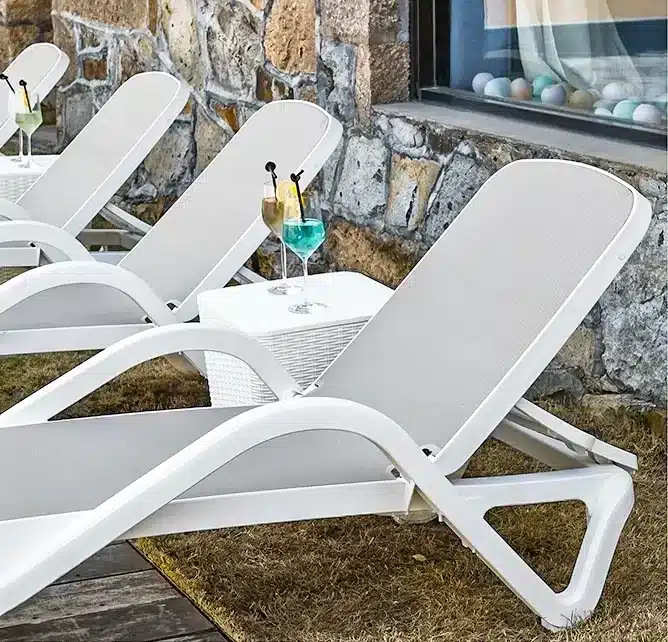 מיטת שיזוף מיקונוס היא שילוב מושלם של סגנון ונוחות לחוץ.