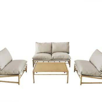 סט סלון חוץ בעיצוב טבעי ועדכני, המשלב מראה במבוק חמים עם קווים נקיים.