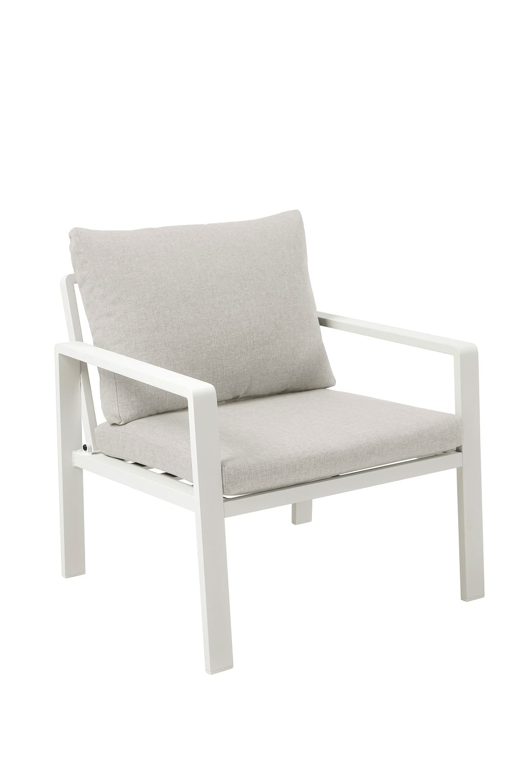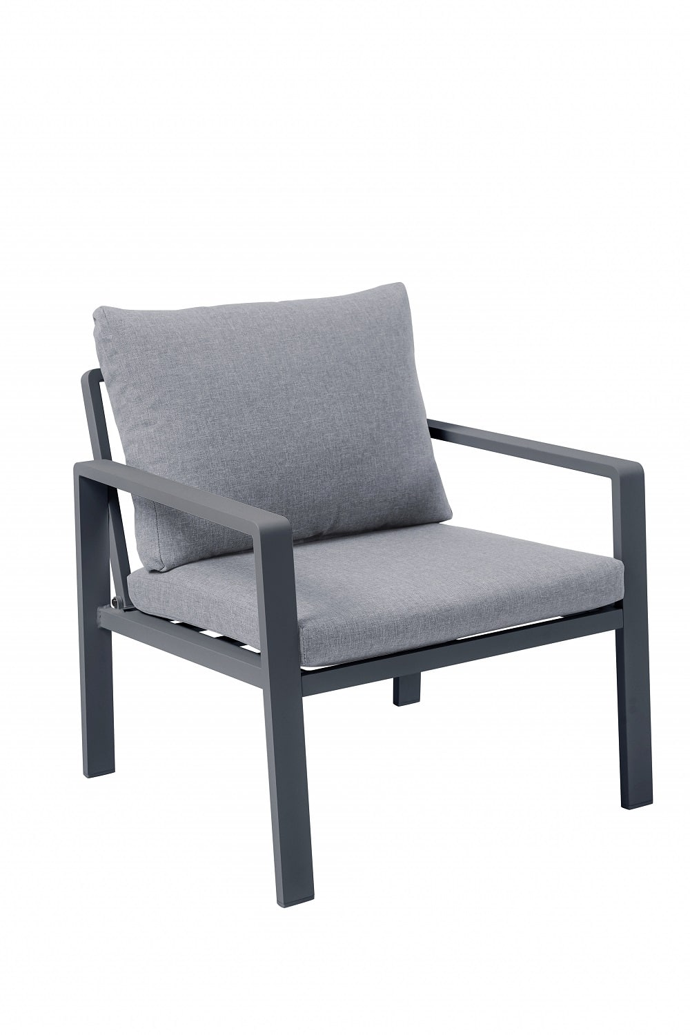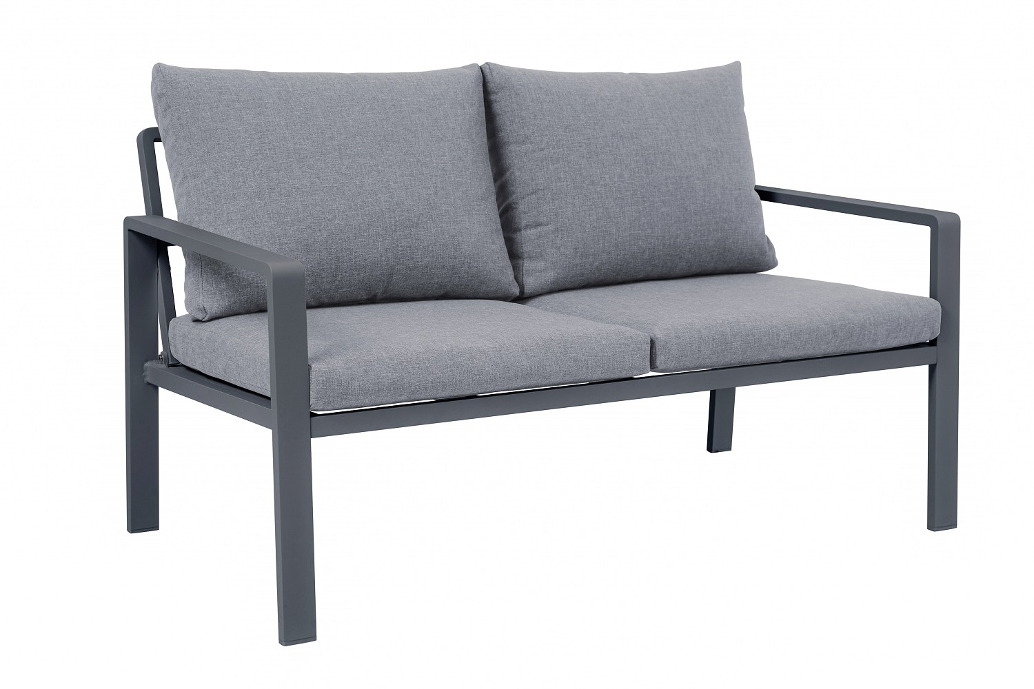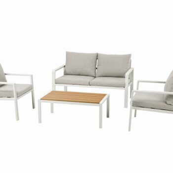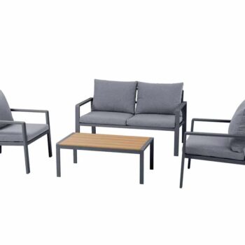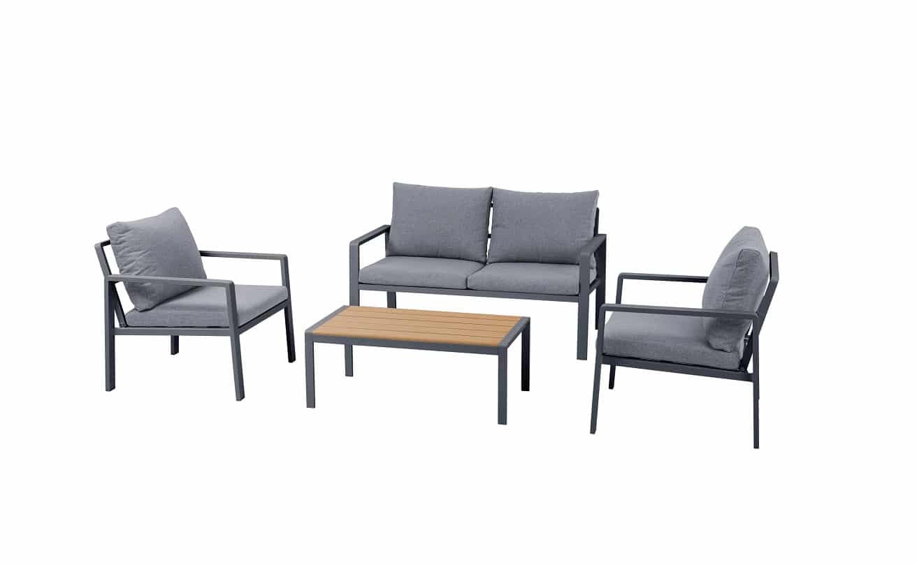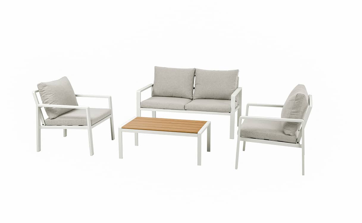 סט ישיבה מעוצב הכולל ארבעה חלקים, עם שלדת אלומיניום בצביעה בתנור בגימור מט.