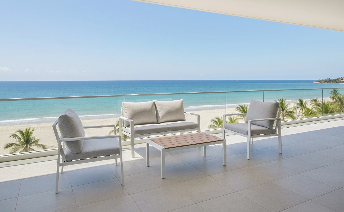 סט ישיבה אשר בנוי משלדת אלומיניום ” אל חלד” בעיצוב מינימליסטי מוקפד ונוחות מרבית.