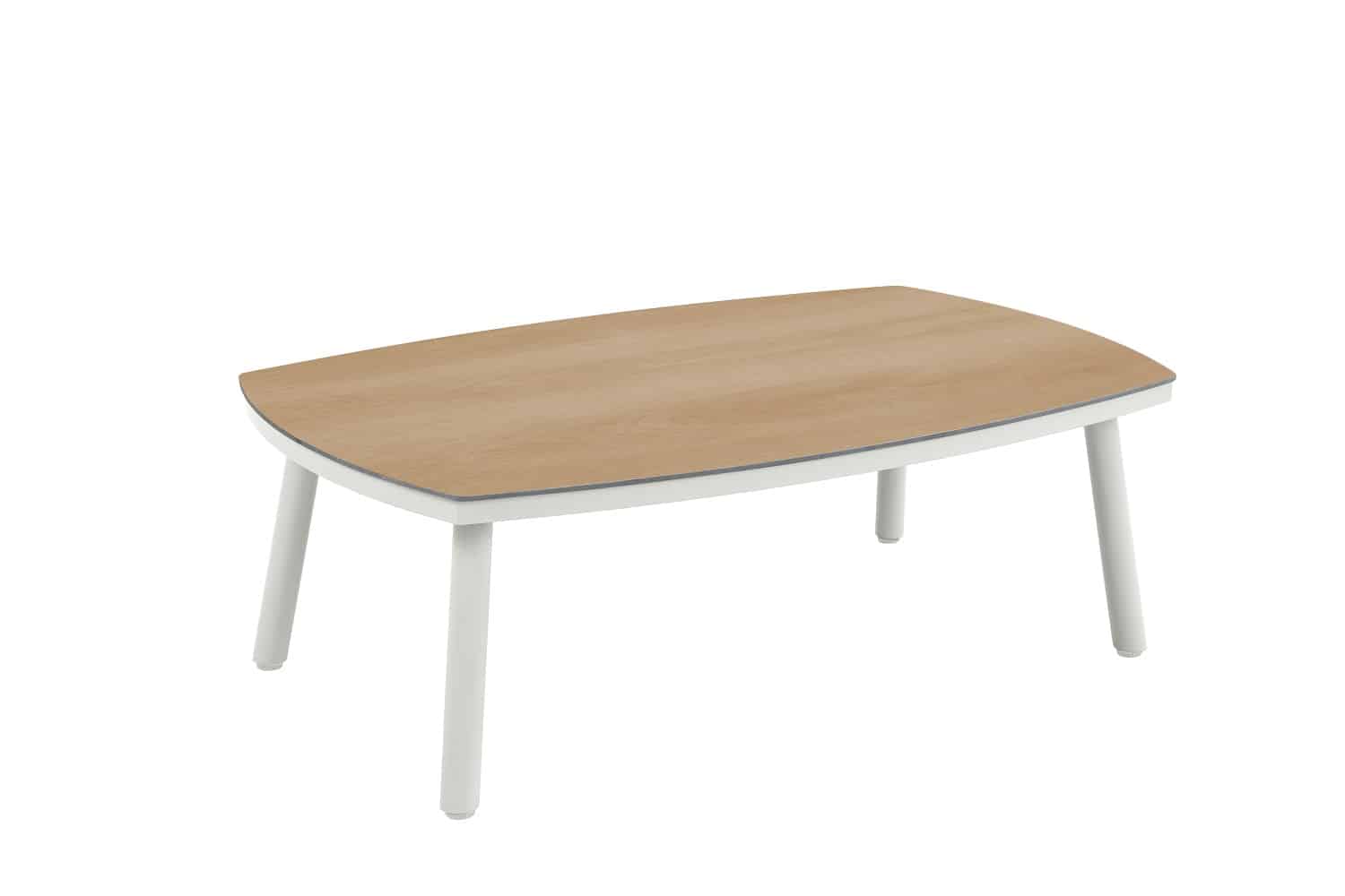 השולחן כולל משטח עליון מדמוי עץ PSPC (פלסטיק מוקצף מחוזק) – עמיד לפגעי מזג האוויר ומושלם לחוץ.