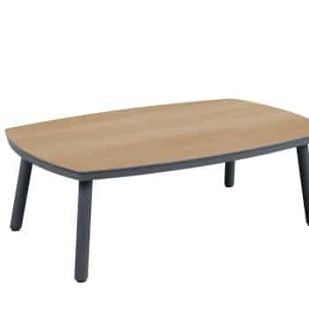 השולחן כולל משטח עליון מדמוי עץ PSPC (פלסטיק מוקצף מחוזק) – עמיד לפגעי מזג האוויר ומושלם לחוץ.