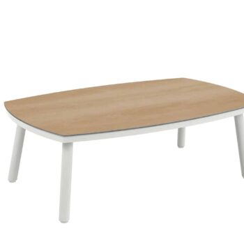 השולחן כולל משטח עליון מדמוי עץ PSPC (פלסטיק מוקצף מחוזק) – עמיד לפגעי מזג האוויר ומושלם לחוץ.
