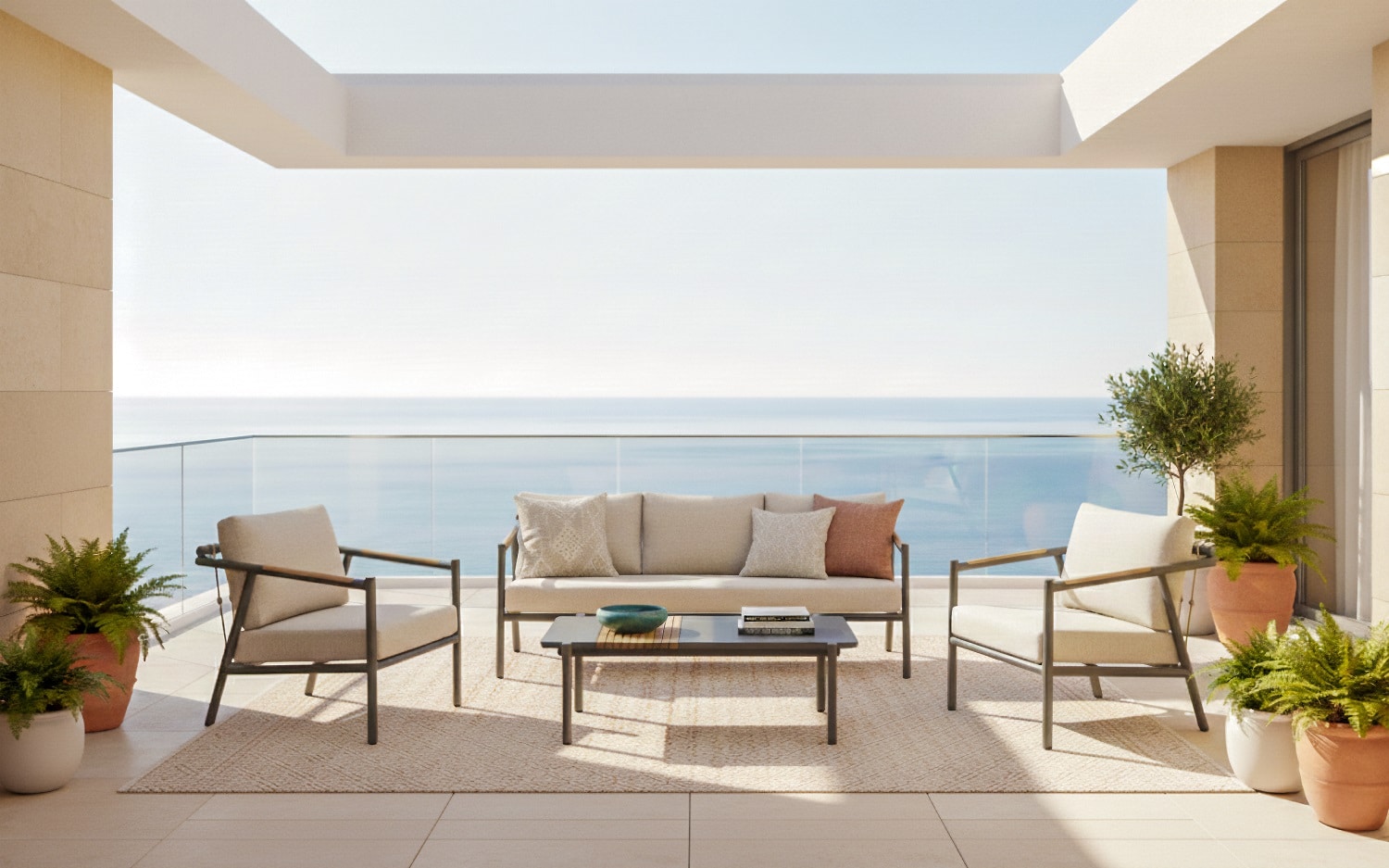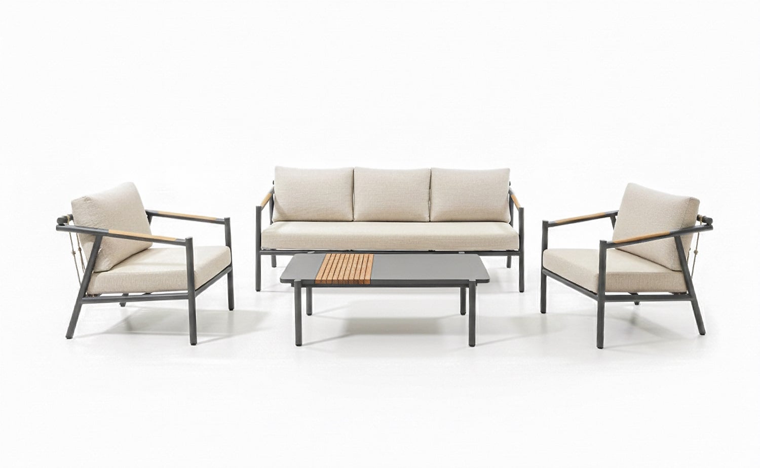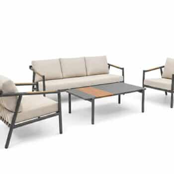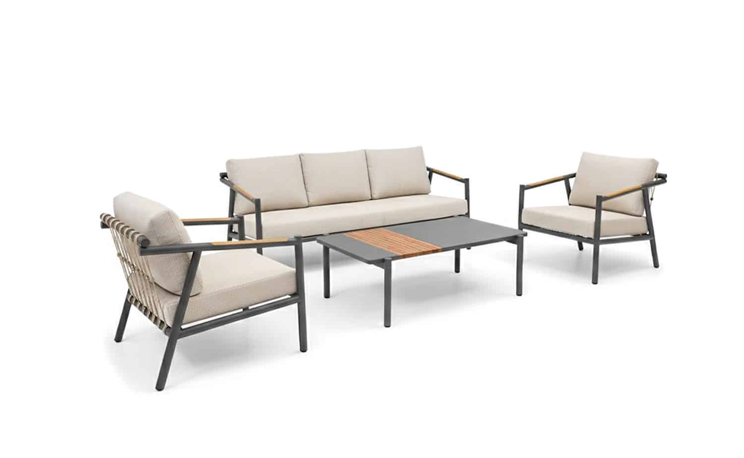 מערכת הישיבה משלבת חומרים מתקדמים העמידים לתנאי מזג האוויר עם עיצוב מודרני ואלגנטי, מושלמת לאירוח או לרגעים של שקט בגינה.