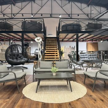 גב הספות משולב בחבלי אולפין איכותיים (קוטר 6 מ”מ) המקנים מראה חמים וטבעי עם עמידות גבוהה לתנאי חוץ.