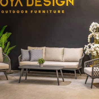 מערכת ישיבה מפוארת הבנויה משלדת אלומיניום “אל חלד” בשילוב חבלי נאוטיקה עמידים לחוץ.