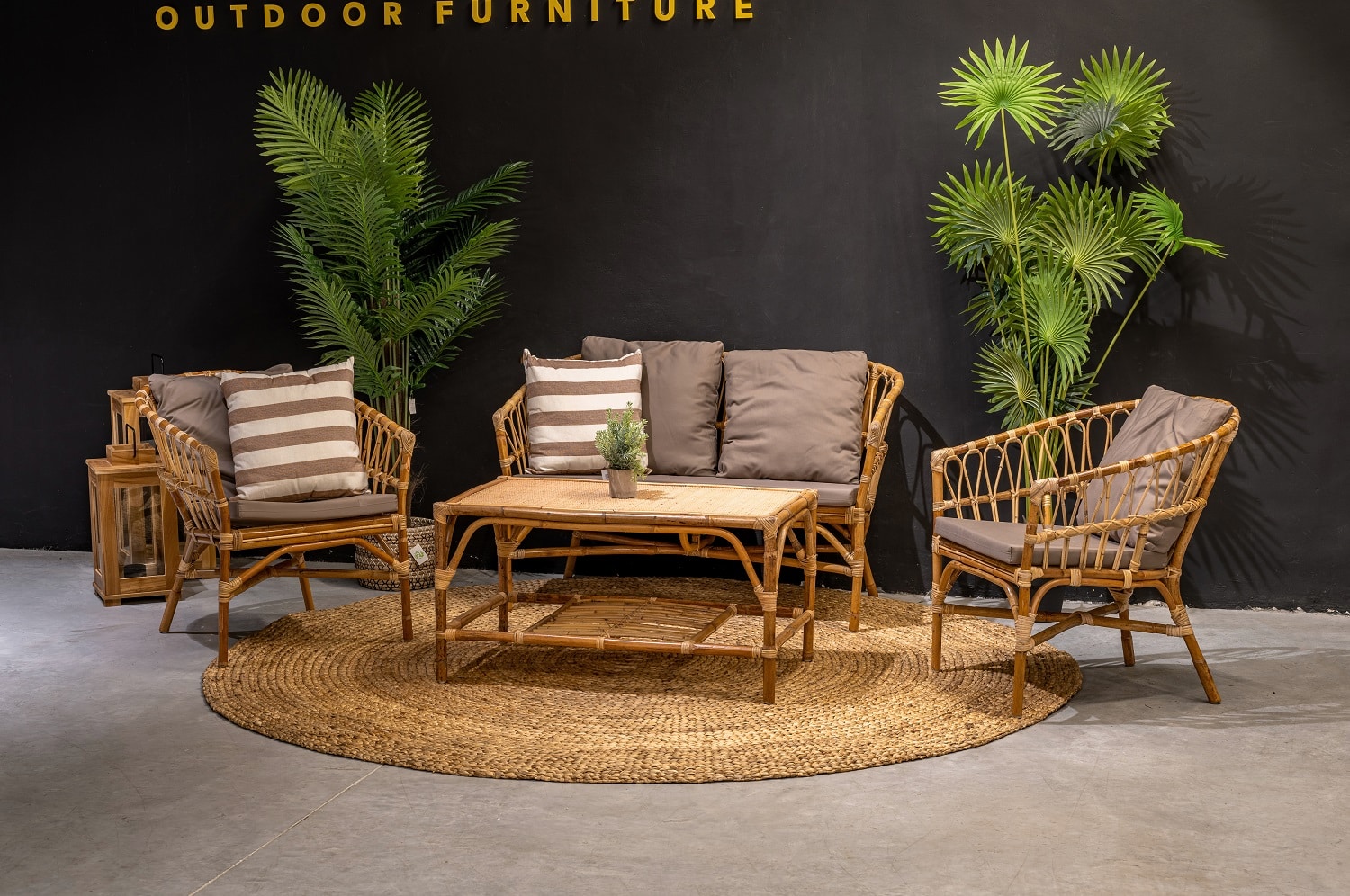 מערכת ישיבה מפוארת הבנויה מראטן טבעי.