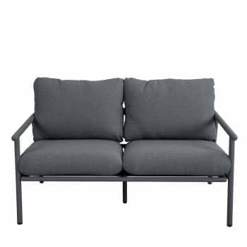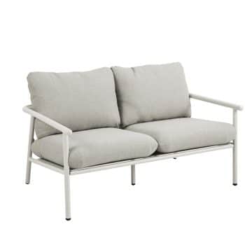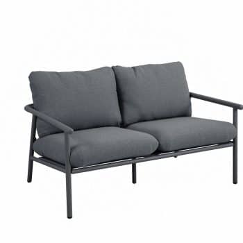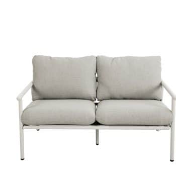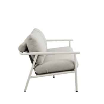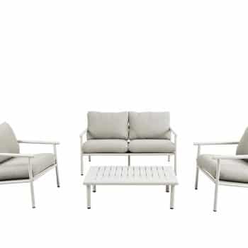סט ישיבה חוץ במראה טבעי ומעודן, כולל ספה זוגית, שתי כורסאות ושולחן קפה.
