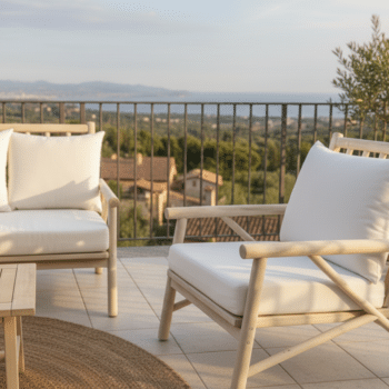 המערכת בנויה מענפי טיק בשילוב ריפוד רחיץ .