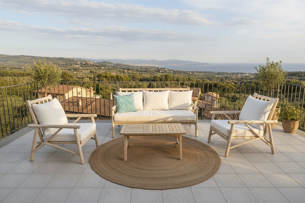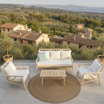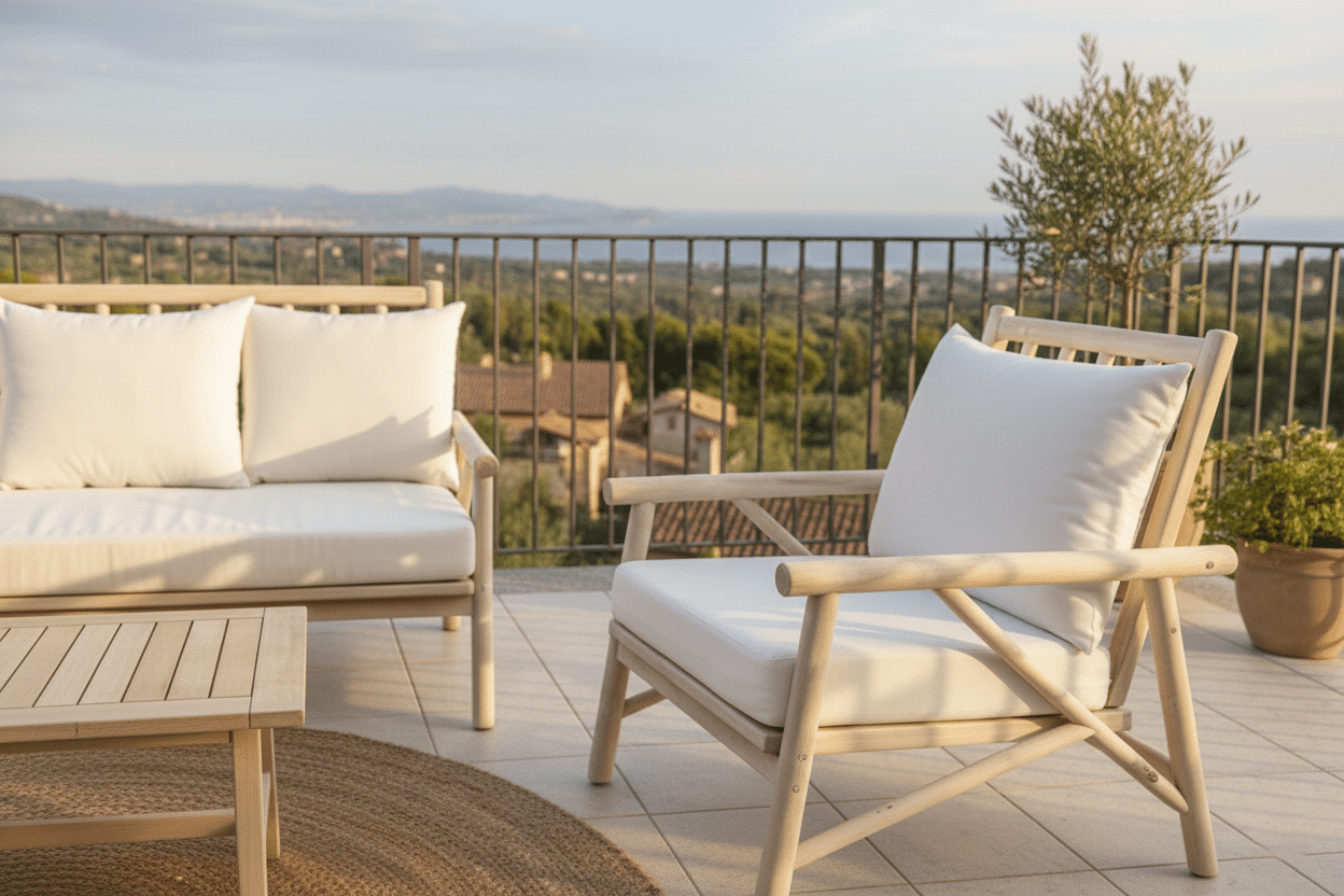 המערכת בנויה מענפי טיק בשילוב ריפוד רחיץ .