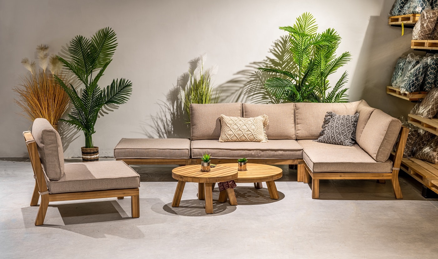 עץ שיטה מלא ומאסיבי בשילוב ריפודי אולפין ארוגים עבים ונוחים.