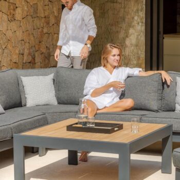שולחן אלומיניום בשילוב לוחות עץ טיק.