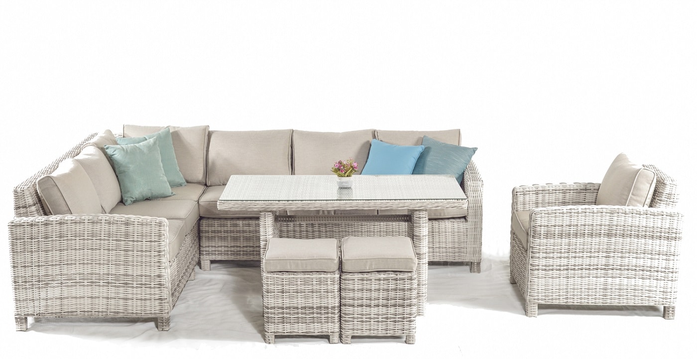 מערכת ישיבה מפוארת הבנויה מראטן עגול בשילוב ריפוד אוליפן רחיץ.