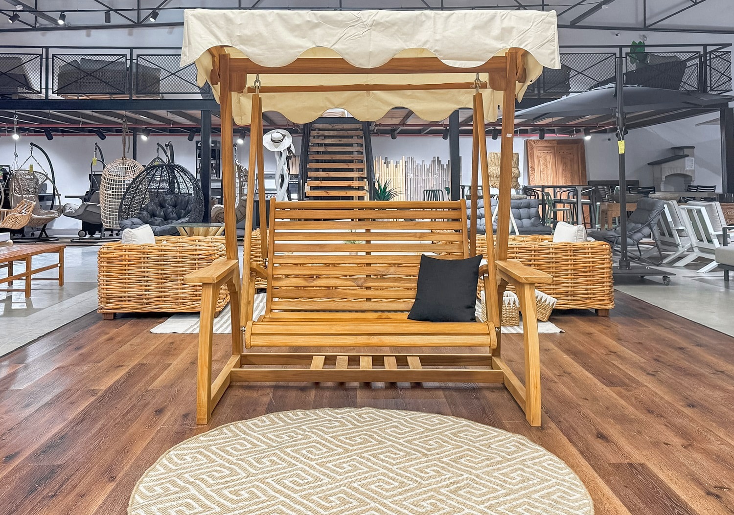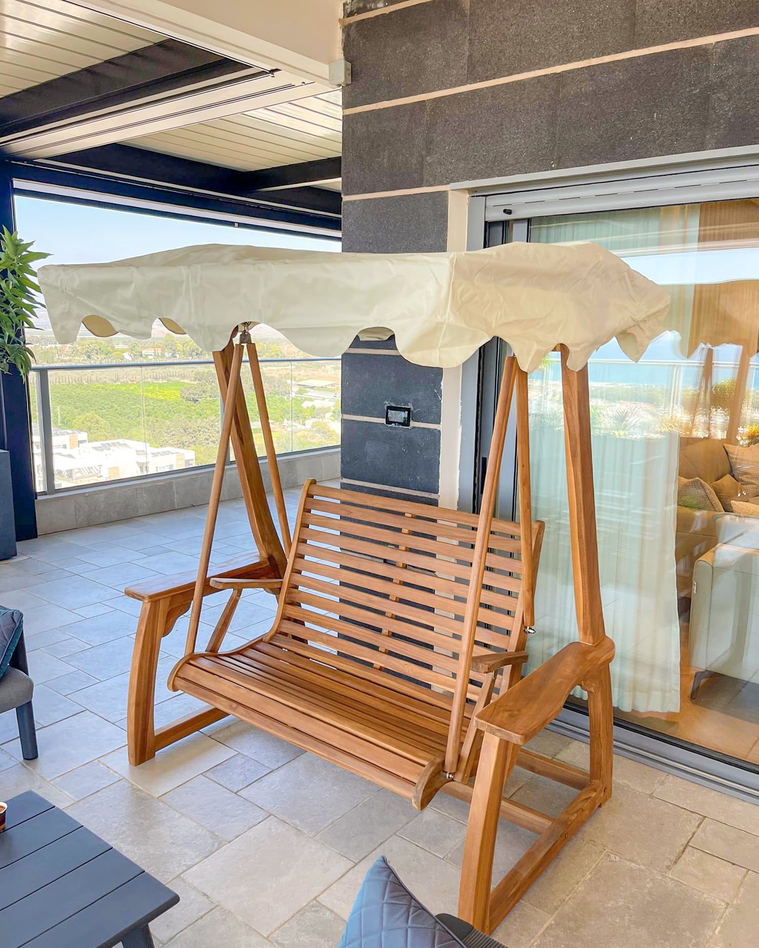 נדנדה מעוצבת הבנויה מעץ טיק דירוג A.