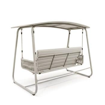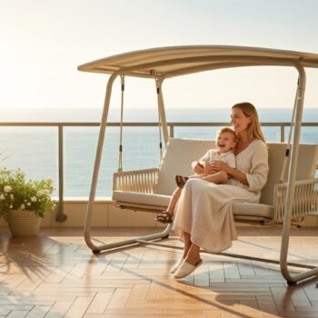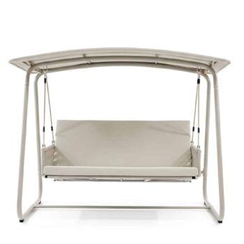 נדנדה זוגית מרשימה עם אפשרות פתיחה למיטה, פתרון מושלם לרגעי מנוחה, אירוח או פינת רביצה מפנקת בחוץ.
