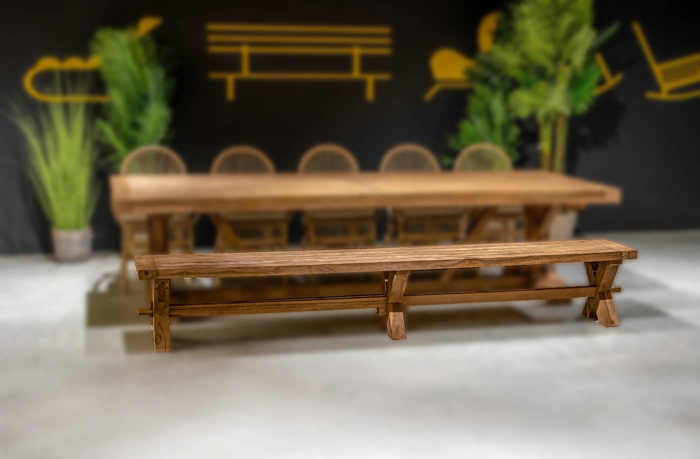 ספסל מרשים וחזק במיוחד הבנוי מעץ טיק אינדונזי.